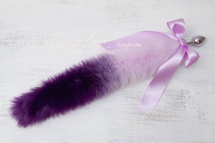 *Extra plush and super fluffy purple ombre stainless butt / anal plug tail (actual fur tail is 18 inches long not including plug), adorned with lilac satin ribbon bow