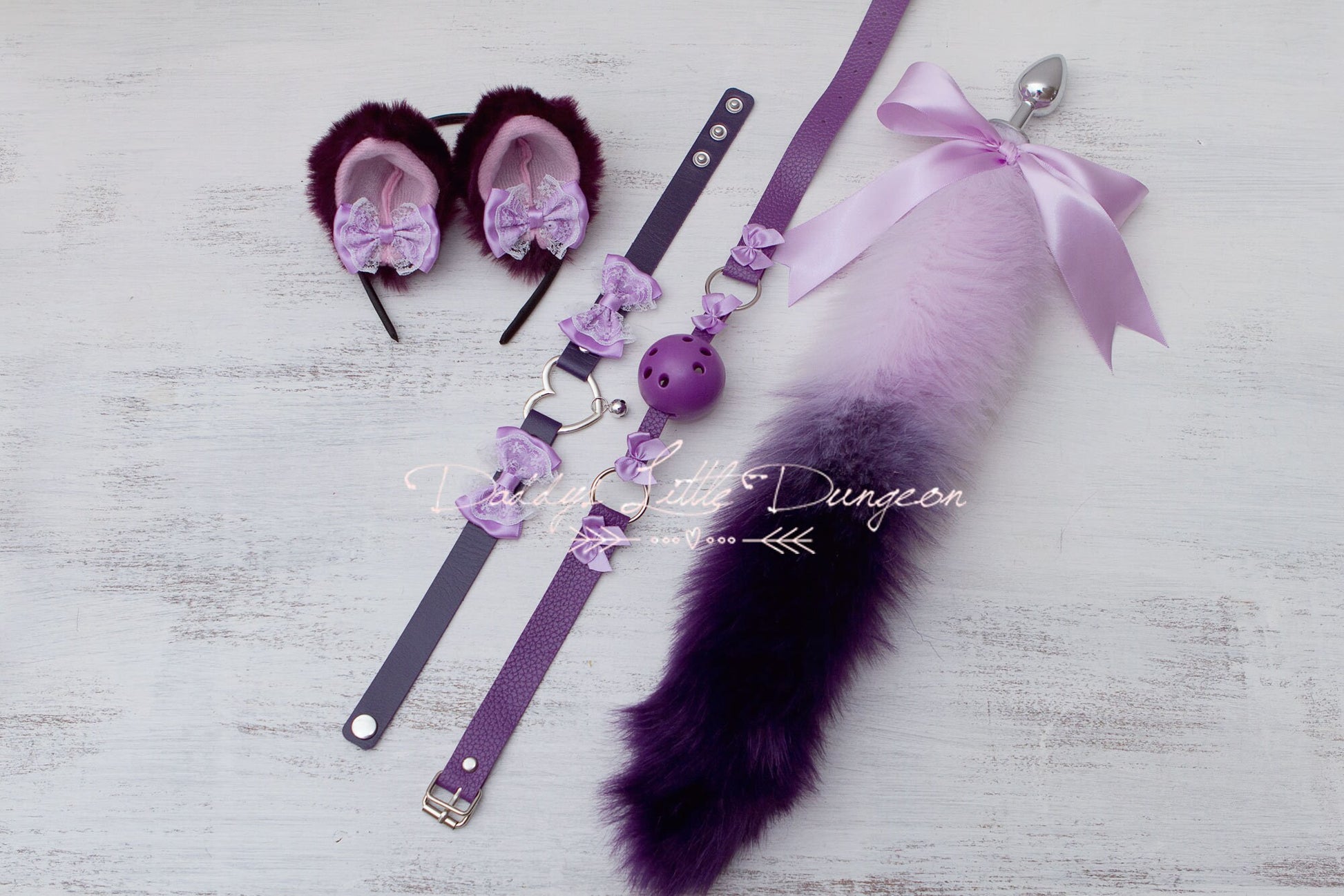 Cute custom designed pretty purple and lilac ombre Pet Play Starter Set for pet play / cosplay.