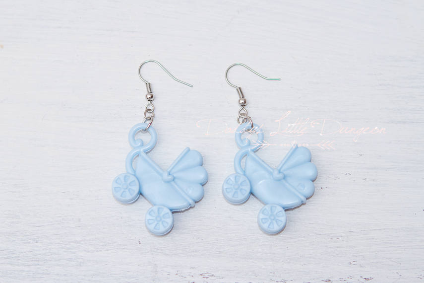Pastel Pram / Baby Carriage Pierced Earrings for Daddy's Good Little Girl.