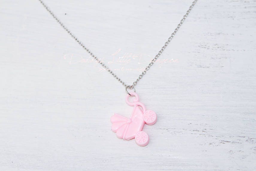 Pastel Baby Carriage Charm Necklace for Daddy's Good Little Girl.