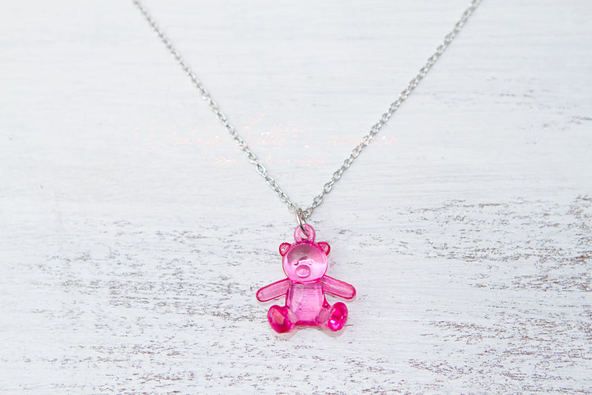 ABDL DDLG Cute Teddy Bear Charm Necklace Daddy's Little Girl Princess Gummy Clear Lolita Baby Sissy Sub Master BDSM Jewelry Kawaii Goth