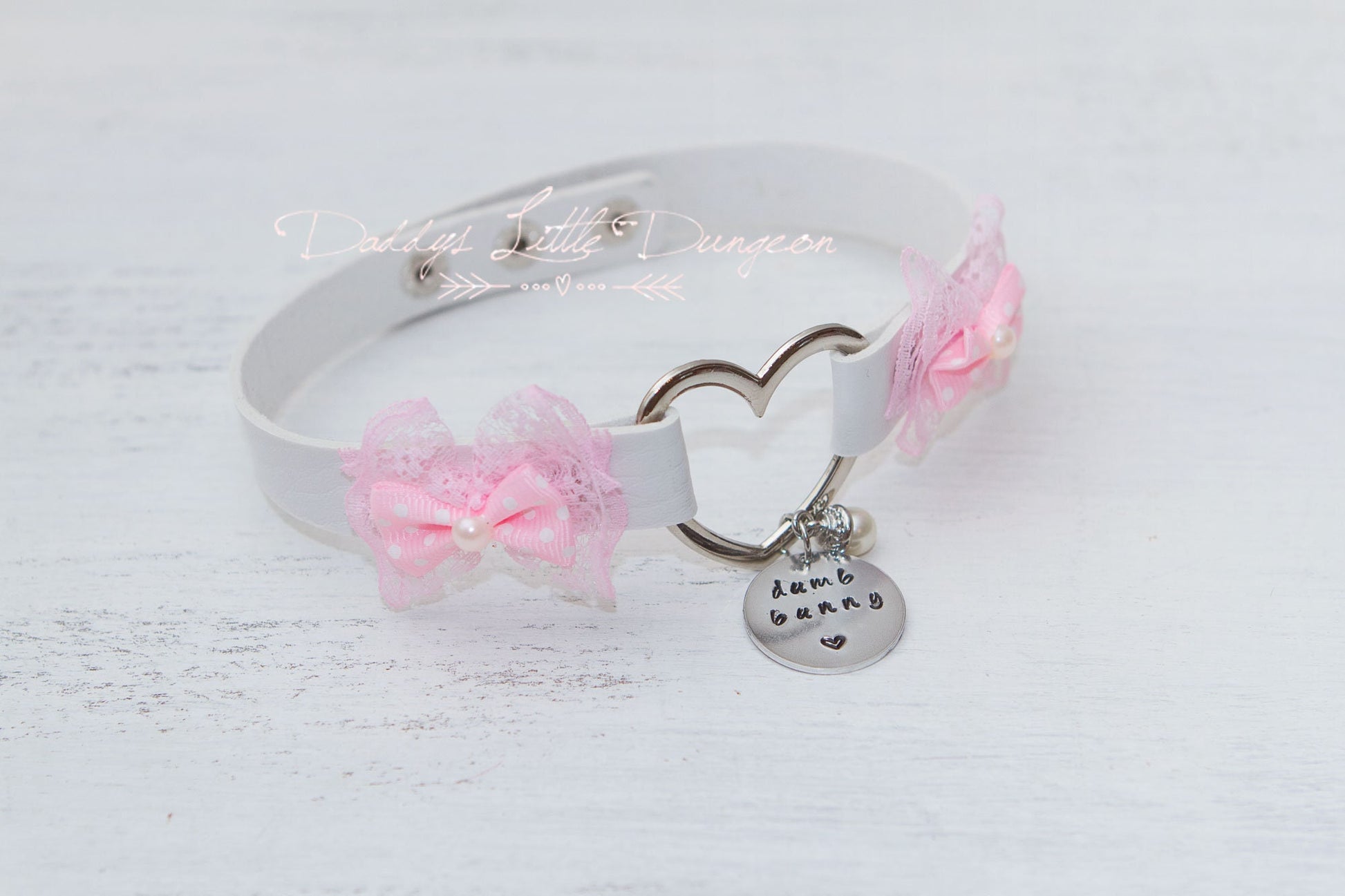 BDSM DDLG Pretty Pearl & Lace Custom Personalized Baby Girl Heart Charm Bunny Day Collar Choker Pet Play Kitty Sub Daddys Little ABDL mature