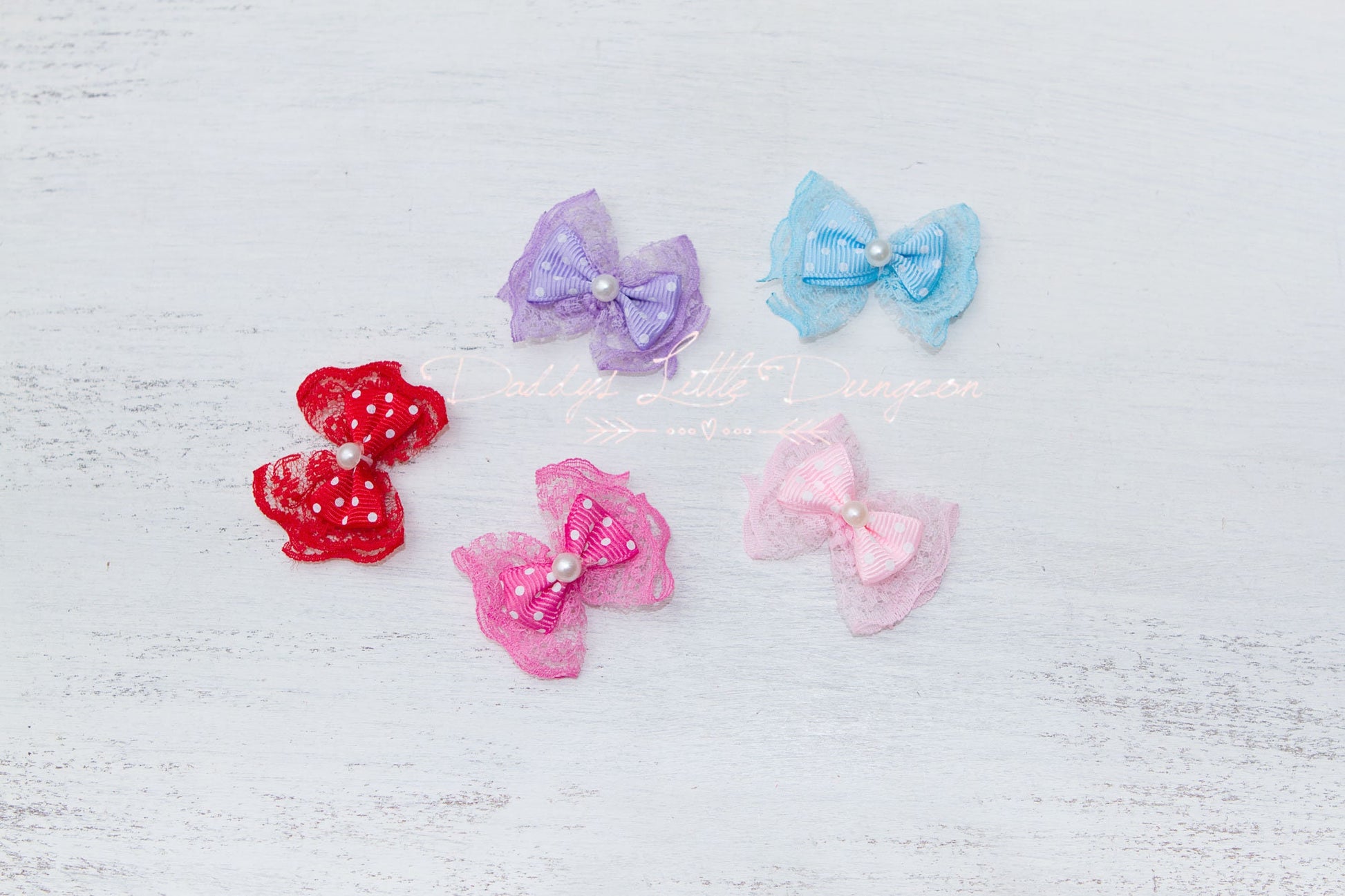 *Pretty girly design adorned with lace and pearl bows and dangling pearl charm in center (matches other treats available in the shop!)