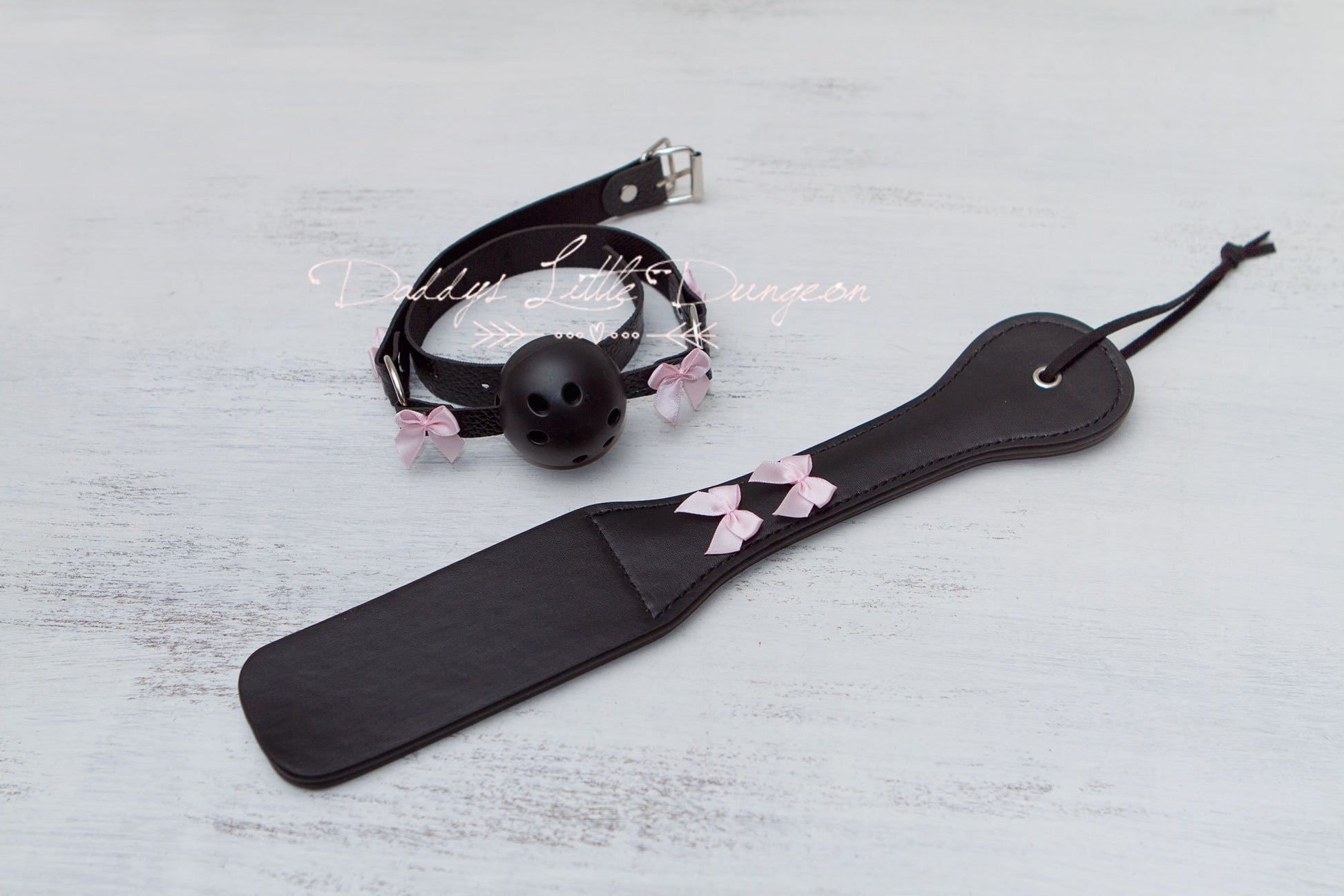 bdsm ~ SPANKED BONDAGE SET ~ ddlg Pretty Spanking Paddle Ball Gag Sub Girly Daddys Little Girl Kawaii abdl Sissy Master Kinky Fetish mature