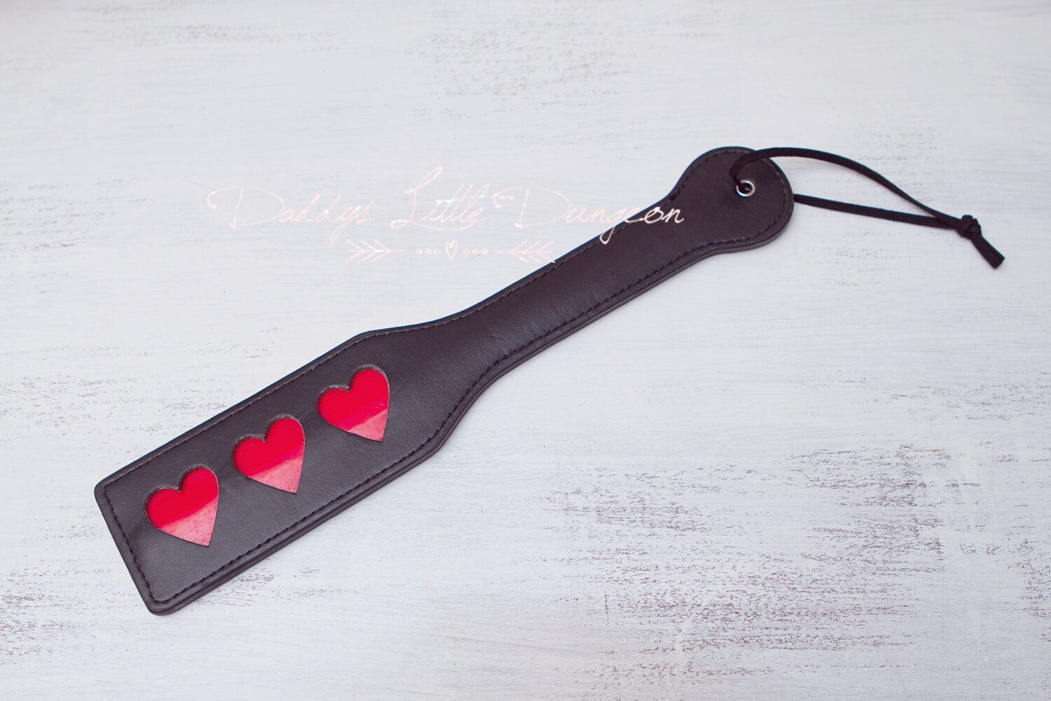 Cute custom designed pretty paddle and ball gag set for light spanking and bondage play.