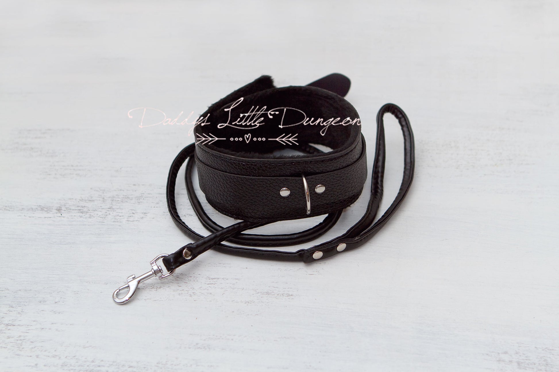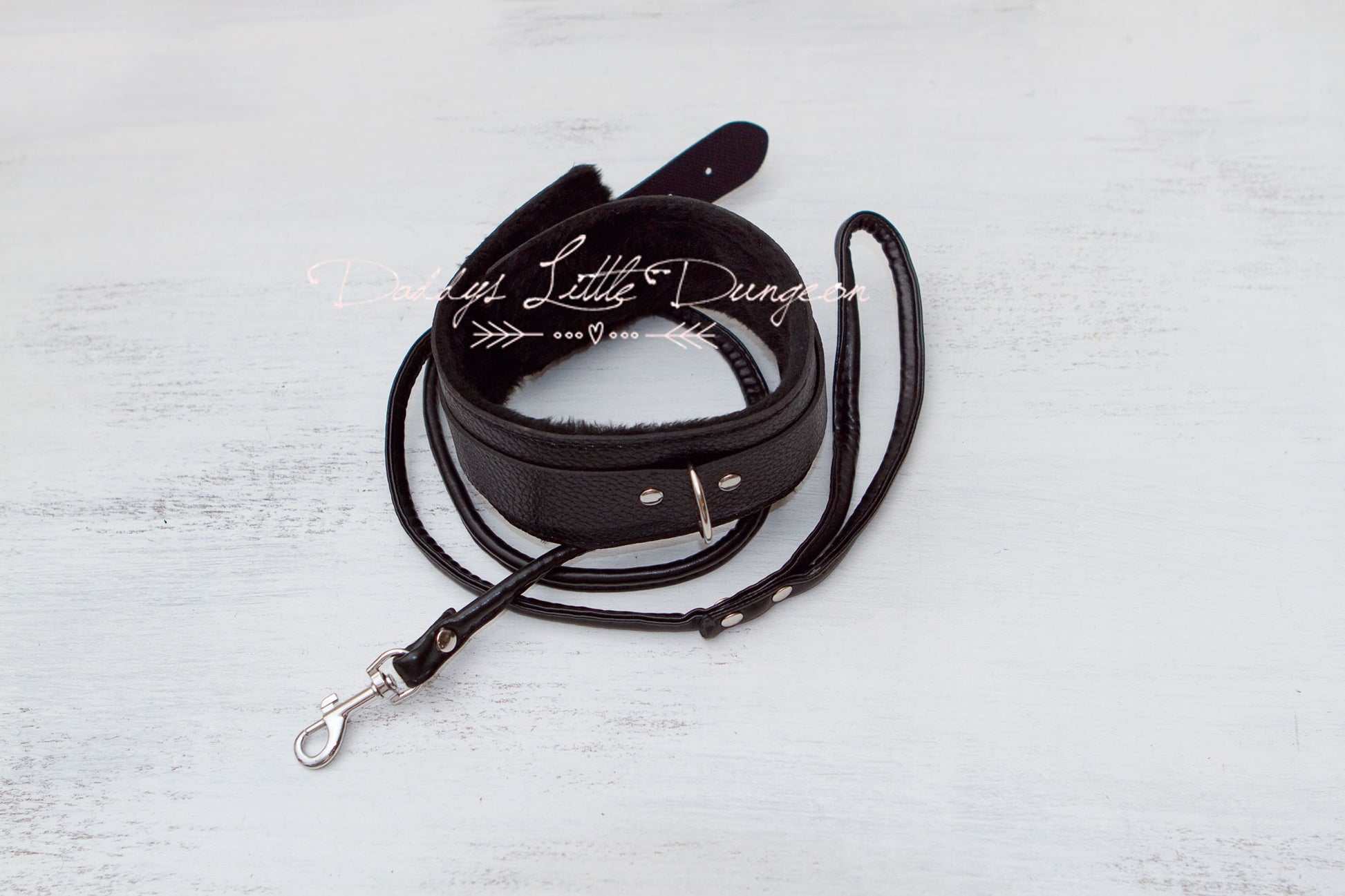 Cute and pretty furry collar and leash for light bondage play.