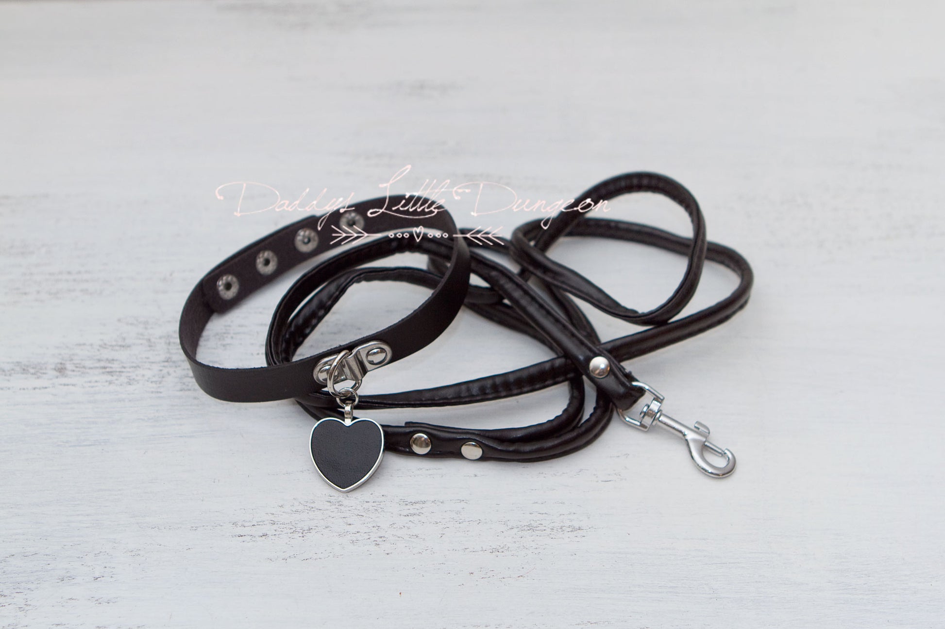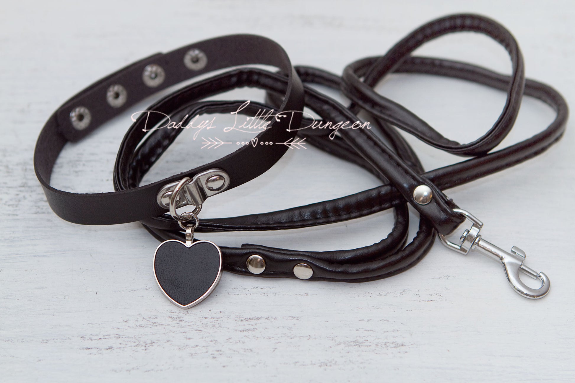 Black Heart Charm Bondage Collar & Leash Set
