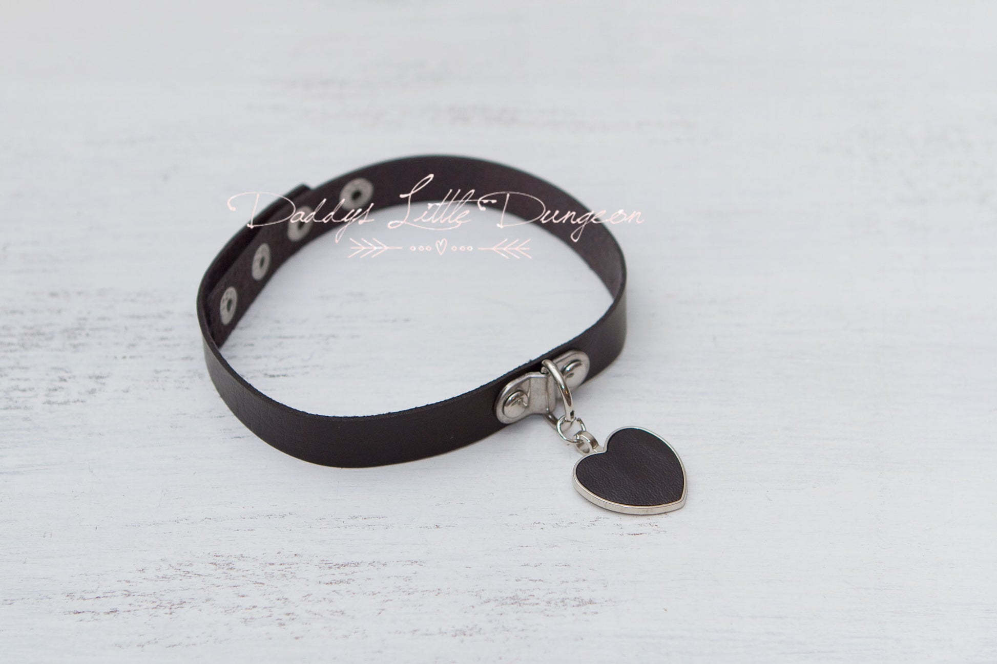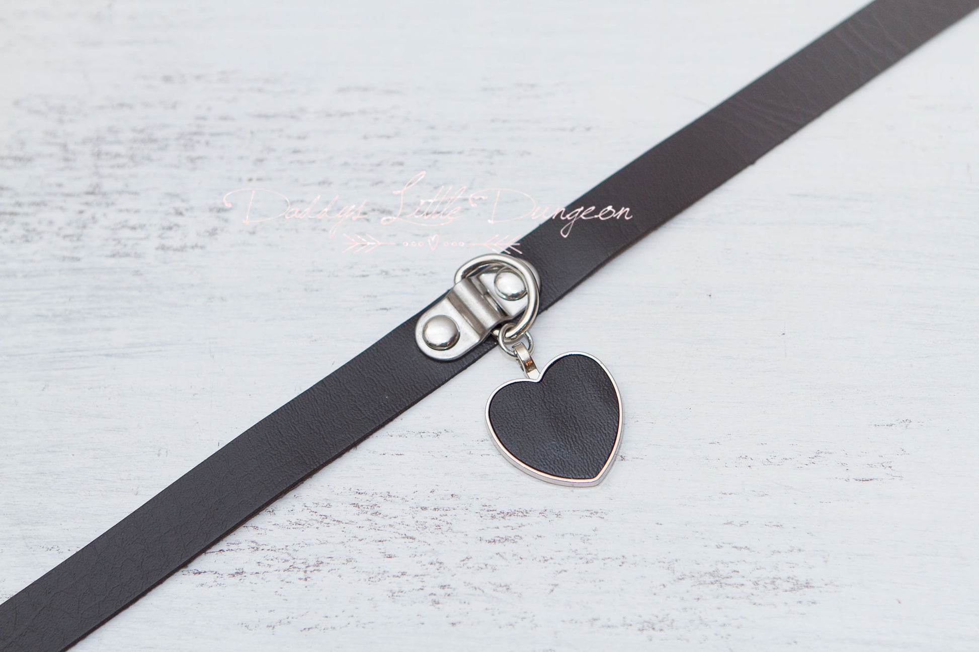 *Collar with heart charm and D ring in center and snap closure (fits 12 1/2 - 15 inch neck size)