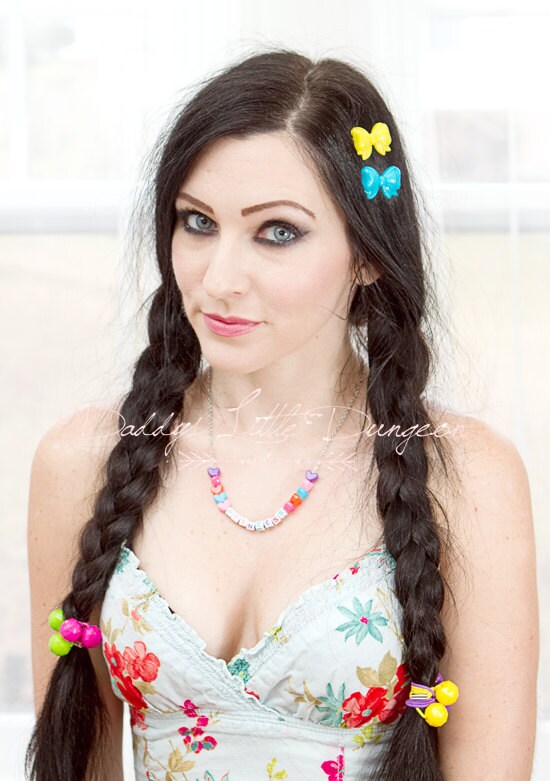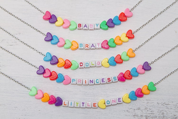 DDLG BDSM Cute Custom Naughty Nickname Word Heart Bead Necklace ABDL Baby PetPlay Kitten Kawaii Daddys Little Girl Pastel Goth mature mdlg