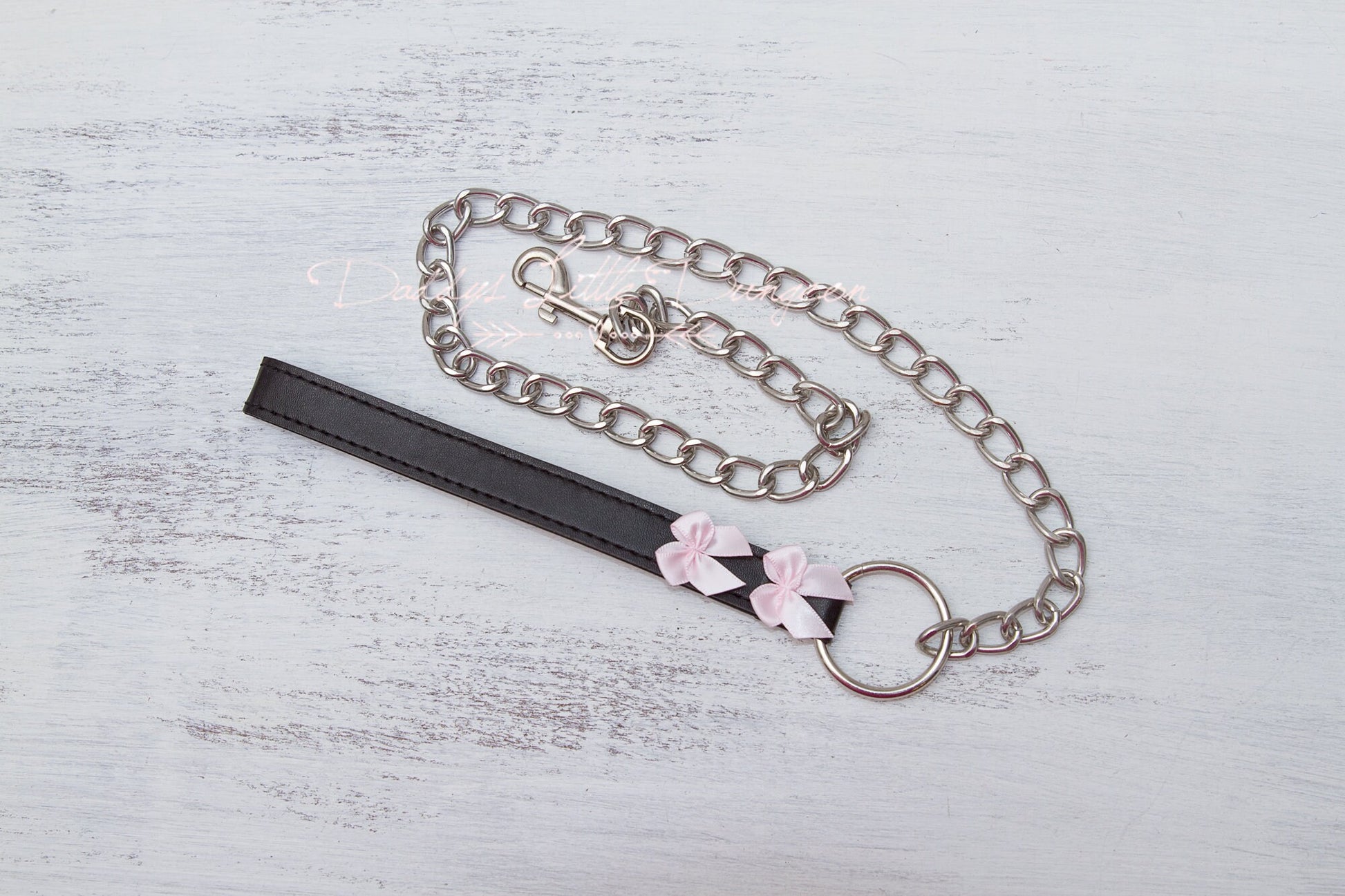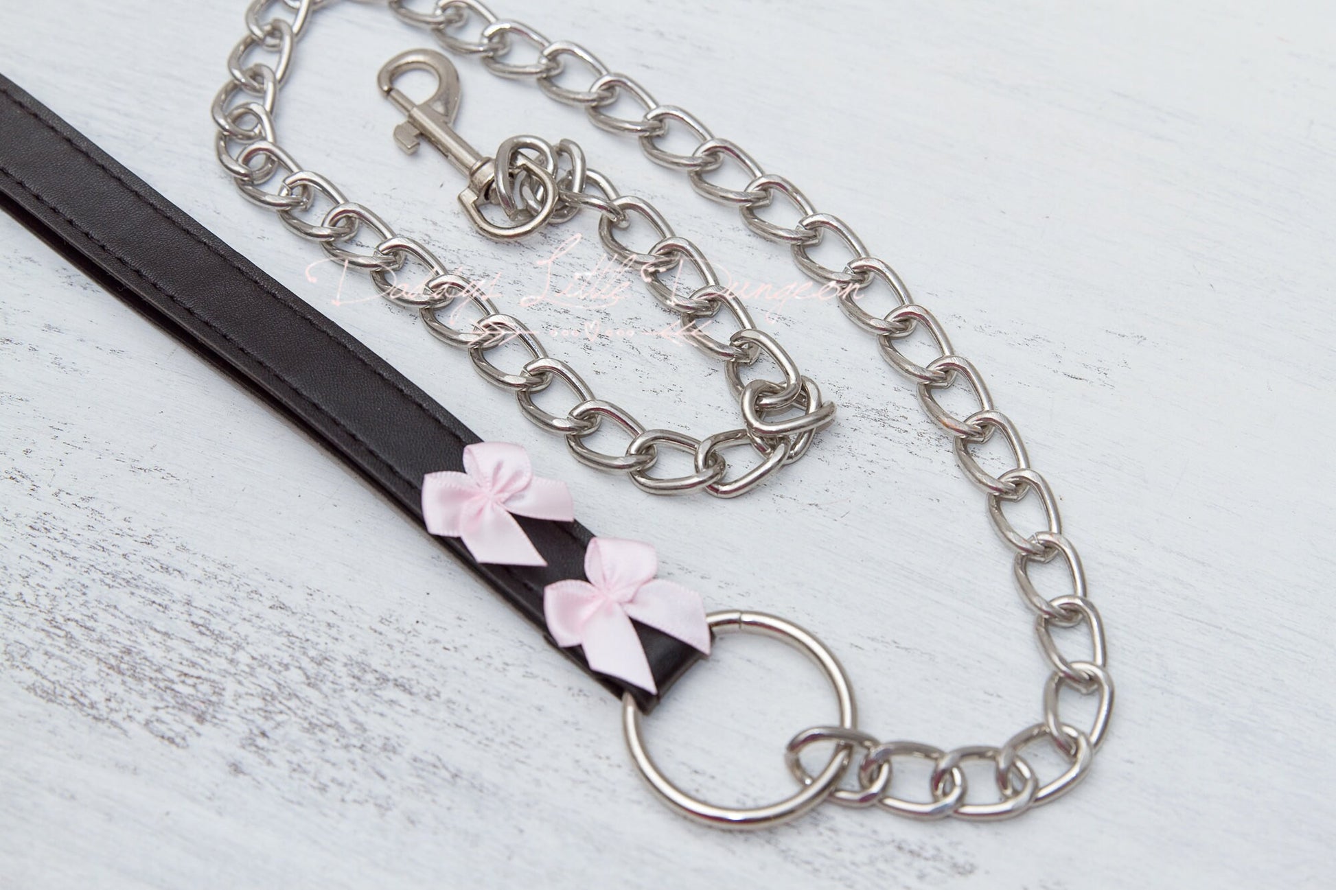 DDLG Black BDSM Chain Leash Satin Bows Submissive Master Kitten Kitty Pet Play Petplay Girly Sub Sissy Daddys Little Girl ABDL mature mommy