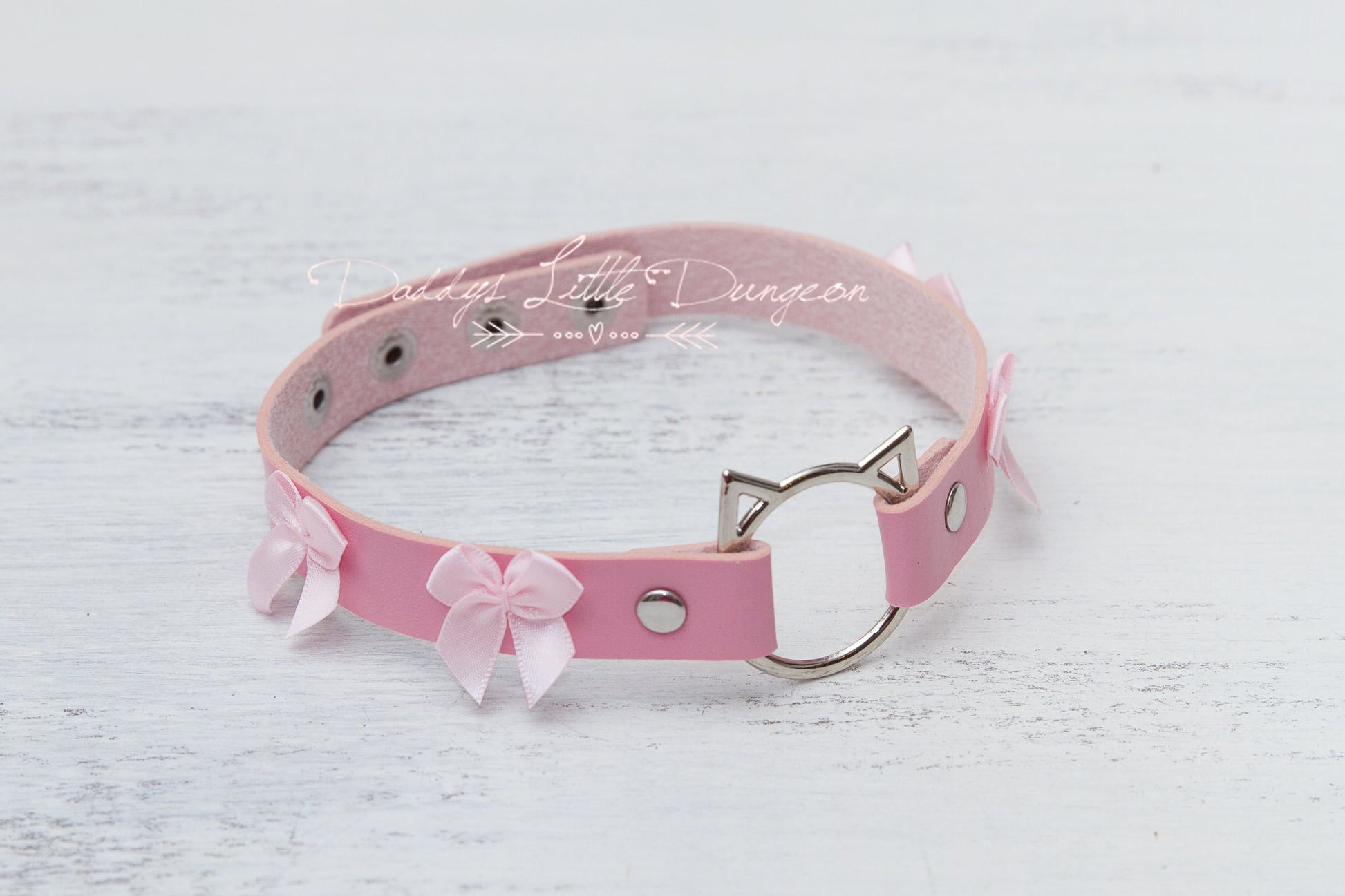 DDLG Kitty & Bow Pink Pet Play Bondage Collar Fox Kitten Puppy Furry BDSM Sub Master Sissy Daddys Little Girl Kawaii mature
