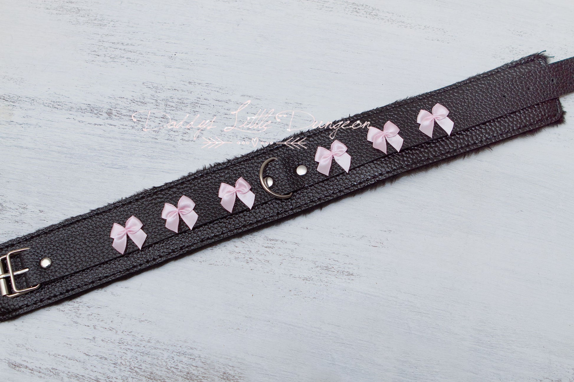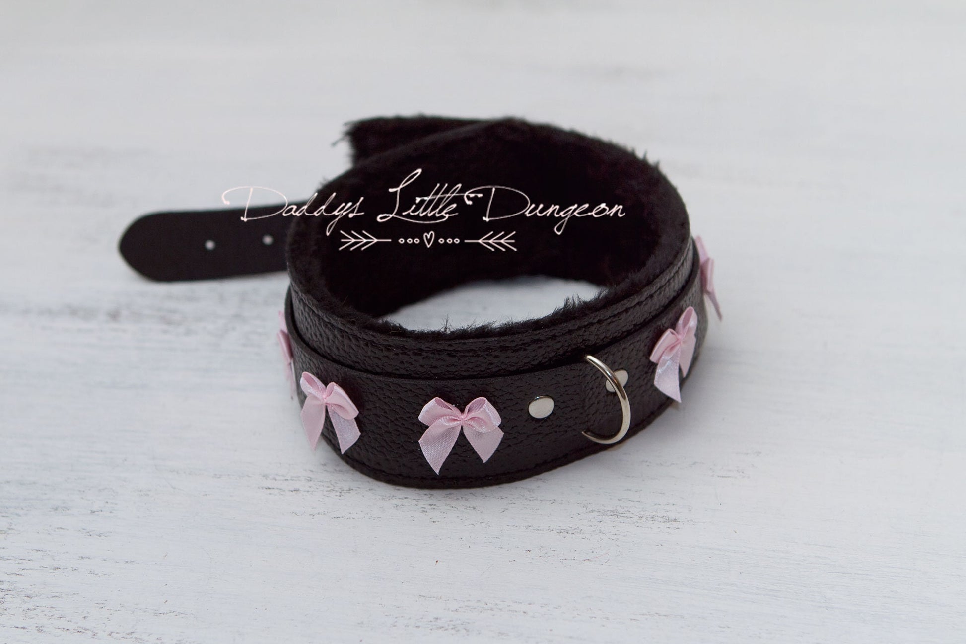 DDLG Pretty Black Furry BDSM Bondage Collar Bows Submissive Master Girly Sub Sissy Daddys Little Girl Kawaii ABDL mature pet play mdlg mdlb