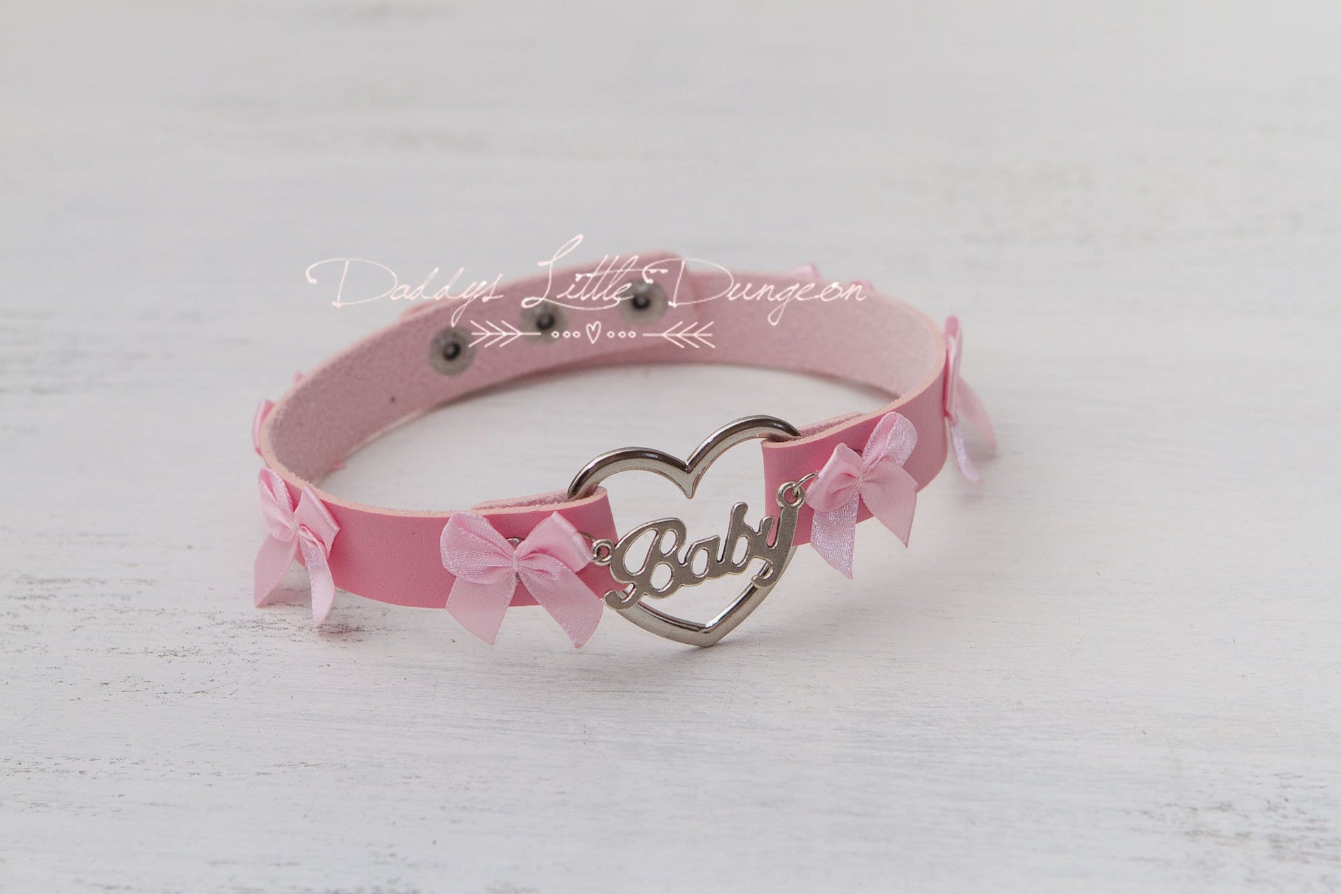 DDLG Pretty Pink BABY bdsm Bondage Collar & Leash Set Bows Submissive Master Girly Sub Sissy Daddys Little Girl Kawaii ABDL mature mommy