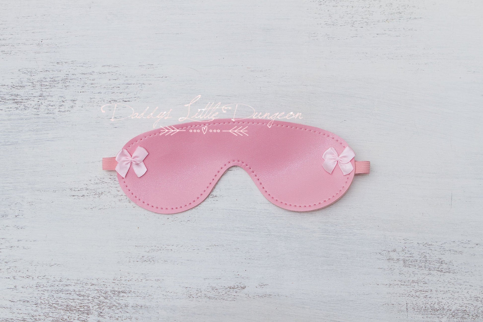 DDLG Pretty Pink BDSM Bondage Blindfold Eye Mask Bows Submissive Girly Sub Daddys Little Girl Kawaii ABDL Sissy Master Kinky Fetish mature