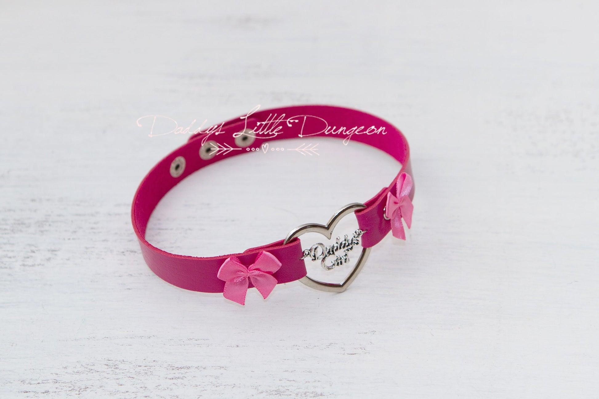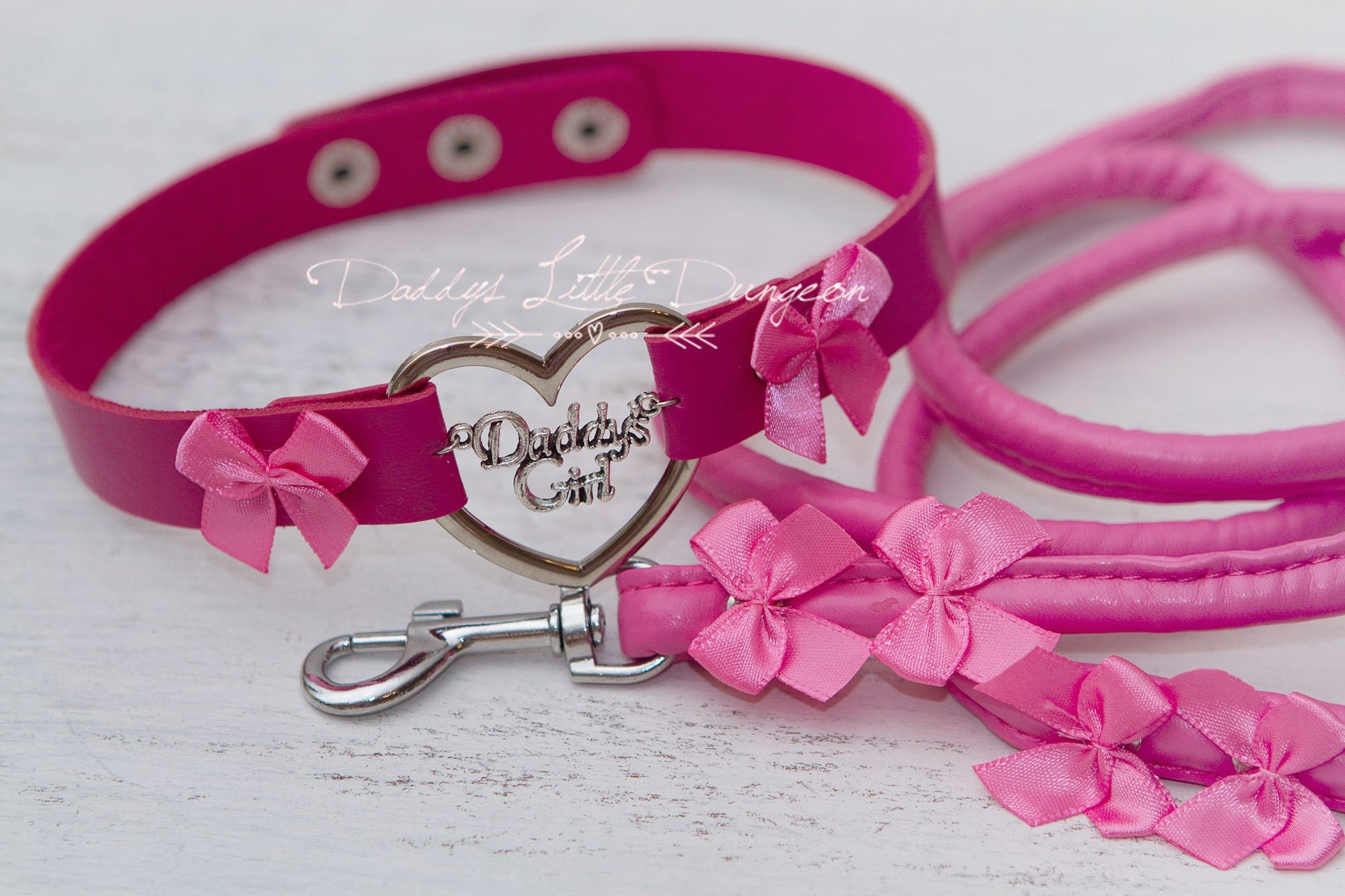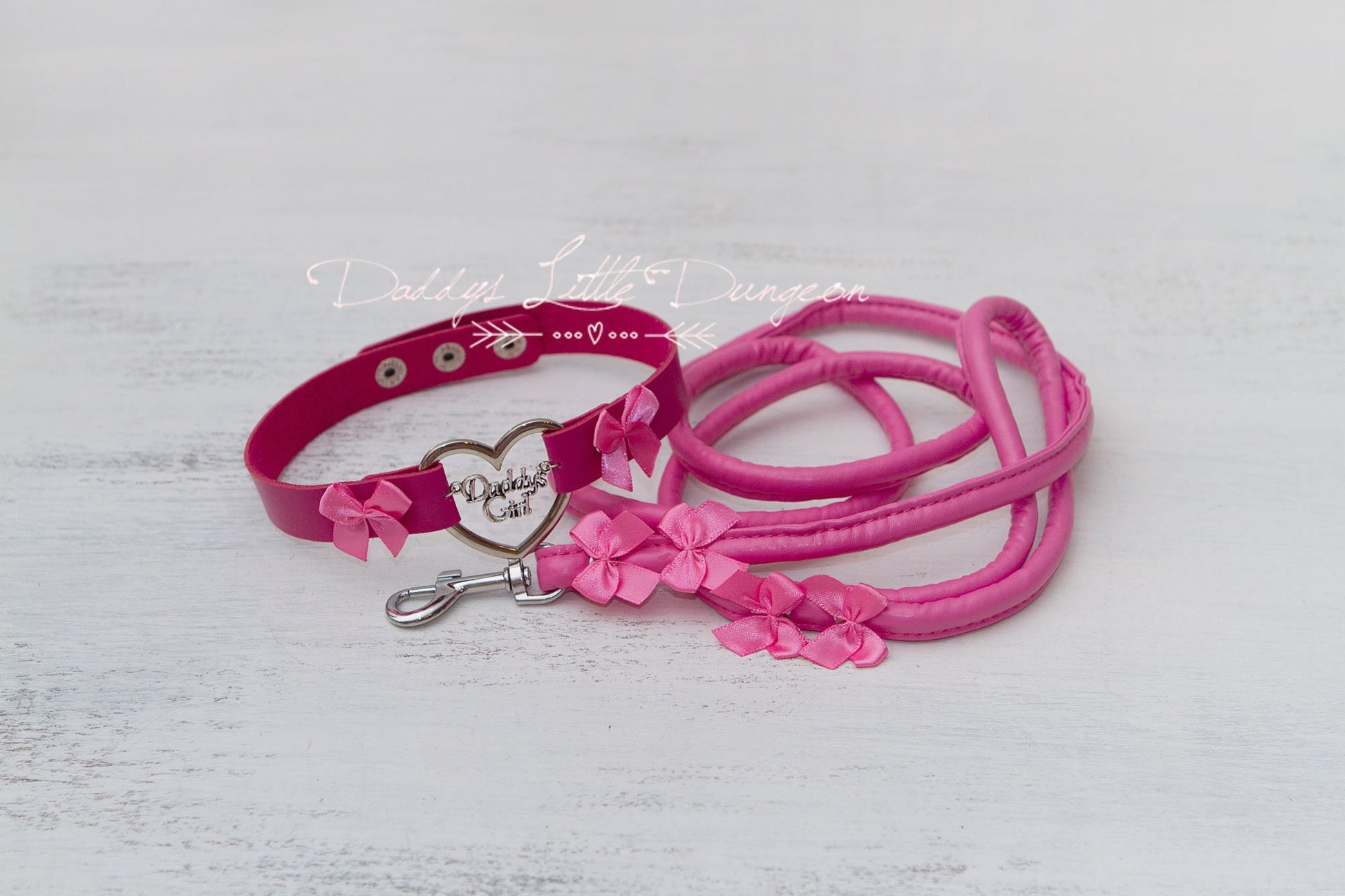 DDLG Pretty Pink BDSM Bondage Collar & Leash Set Bows Submissive Master Girly Sissy Daddys Little Girl Kawaii ABDL mature Baby mommy kitten