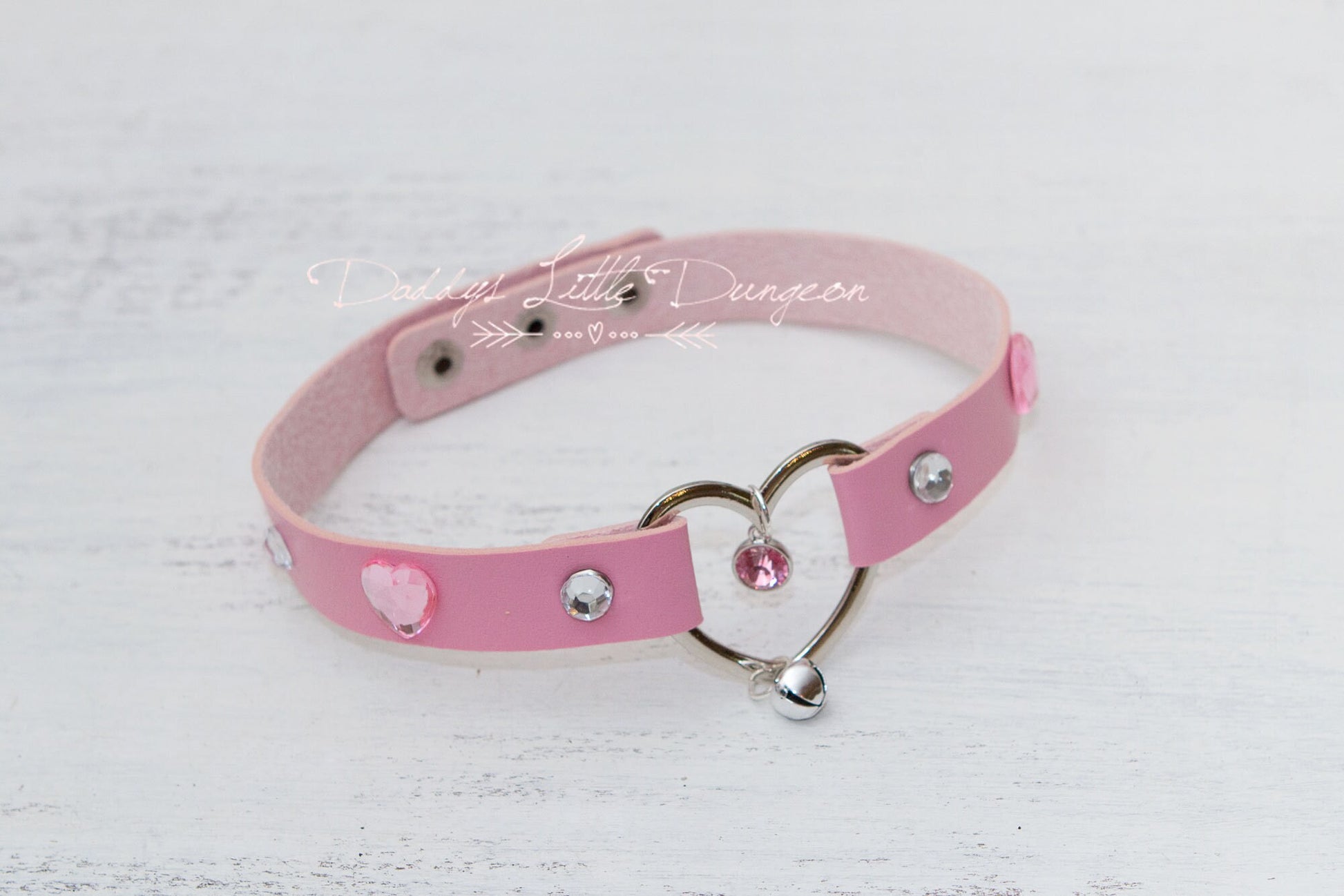 *Heart design in center with sparkling pink rhinestone crystal charm and shiny kitten bell