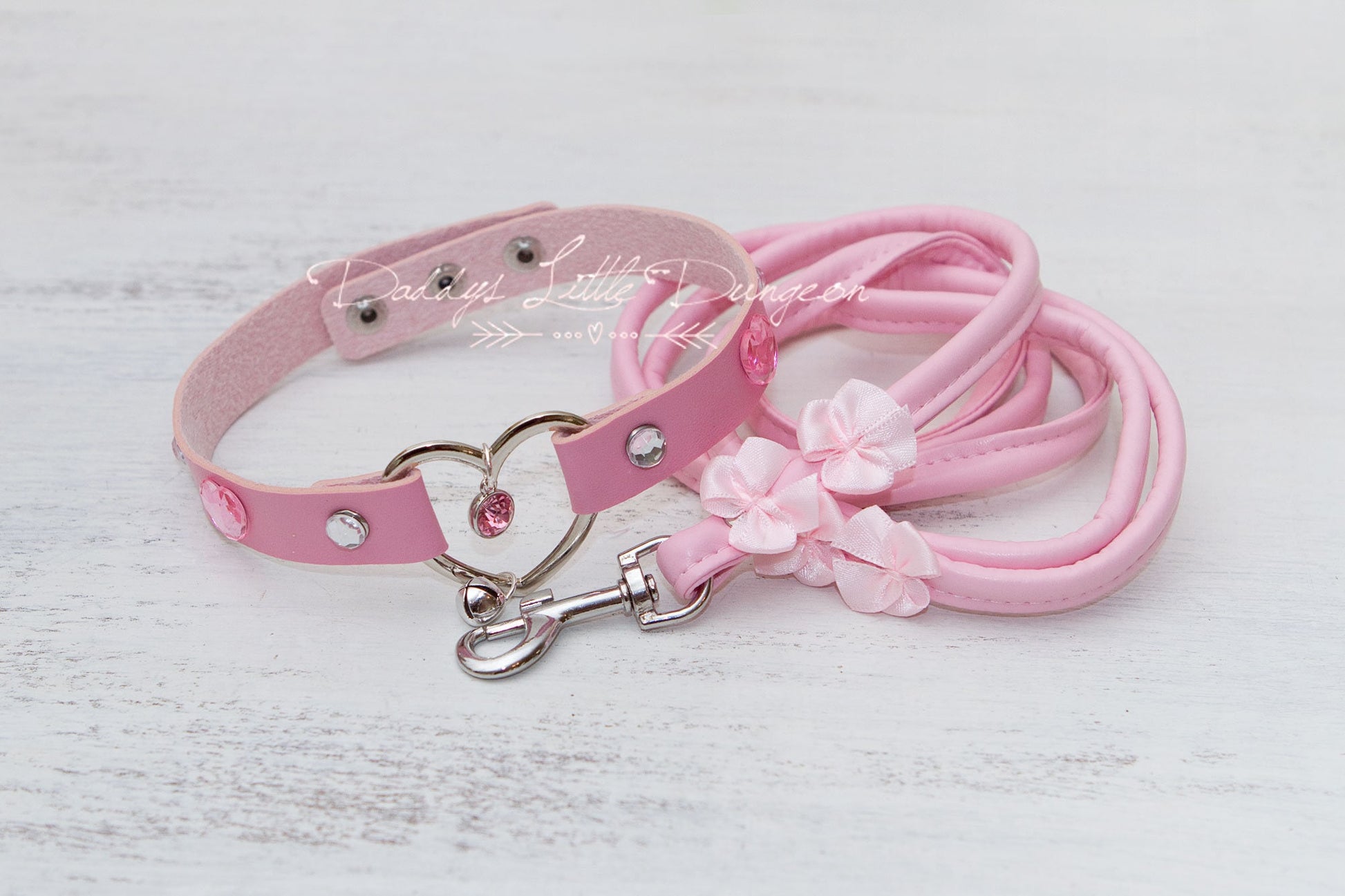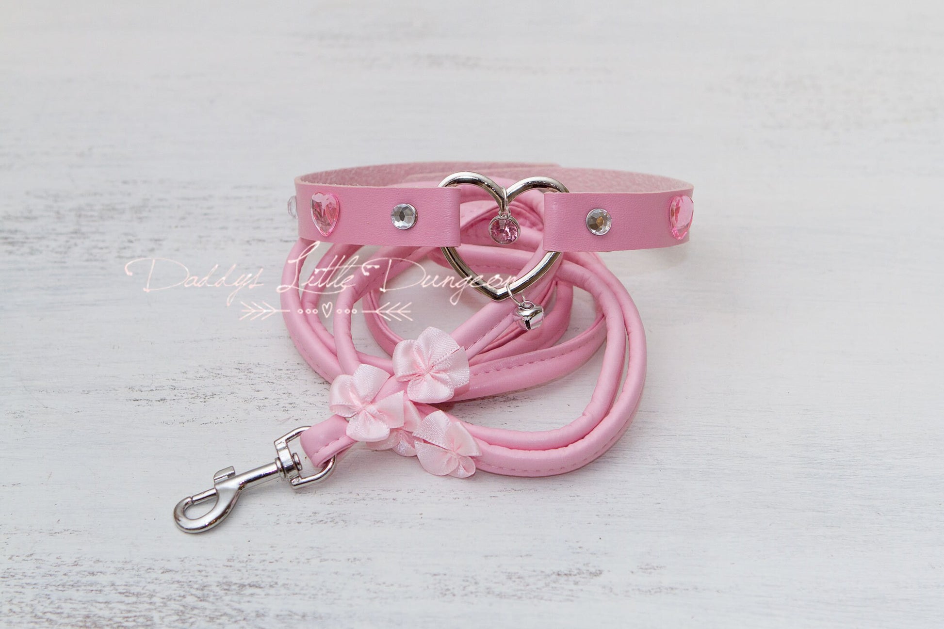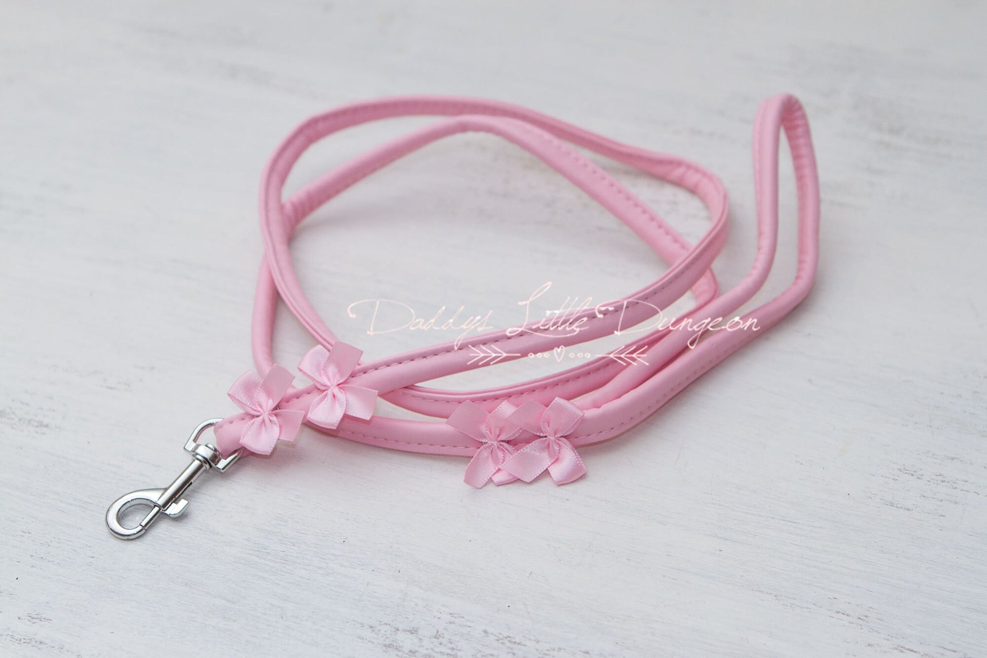 DDLG Pretty Pink BDSM Bondage Collar & Leash Set Satin Bows Sub Master Girly Sub Sissy Daddys Little Baby Girl Kawaii ABDL mature furry