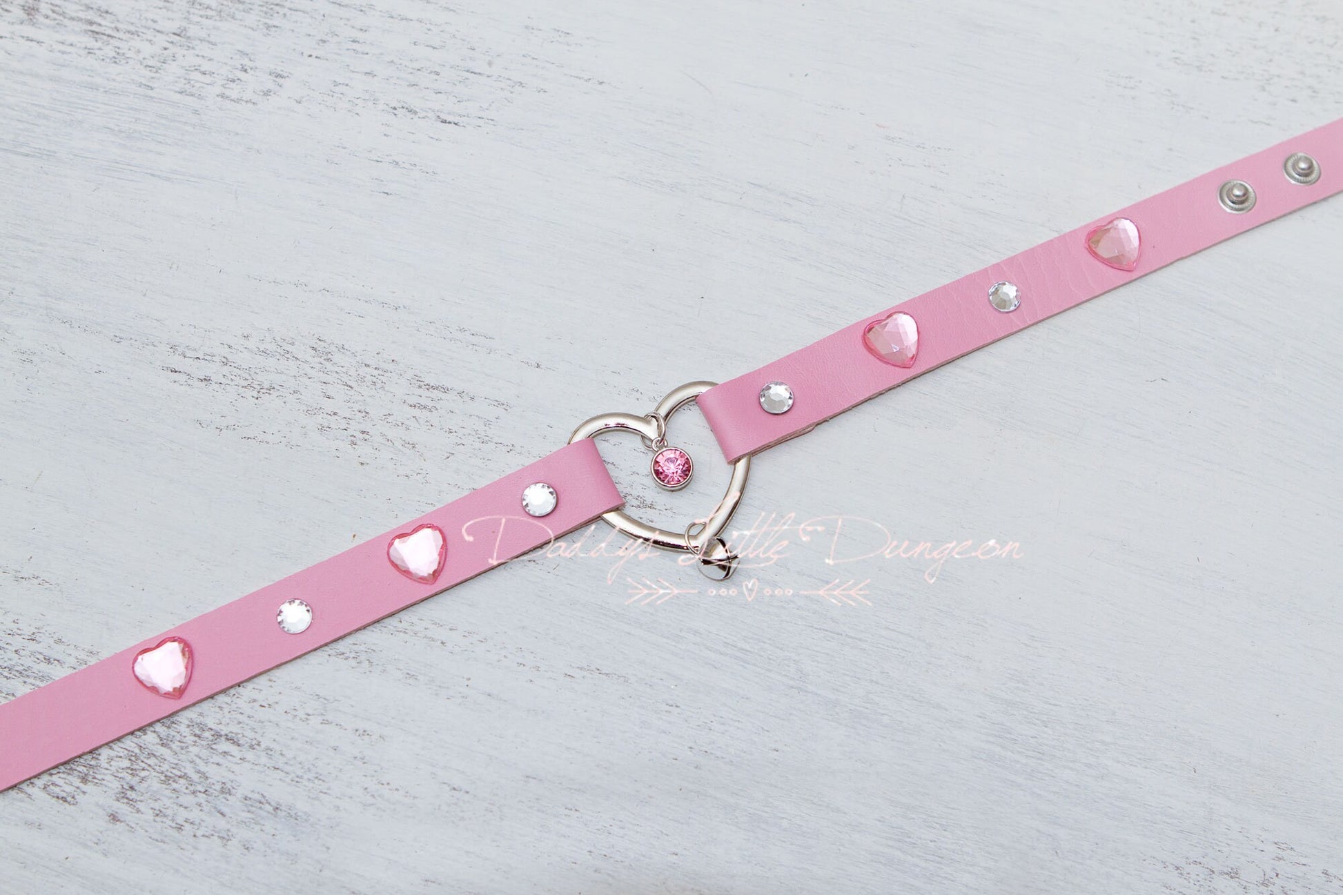 Cute custom designed pretty pink collar and leash for light bondage play.