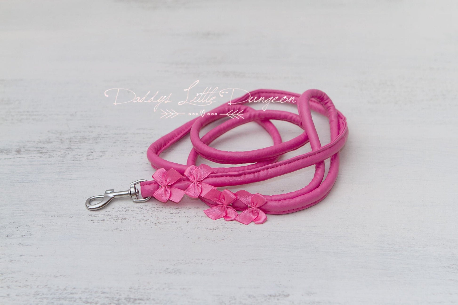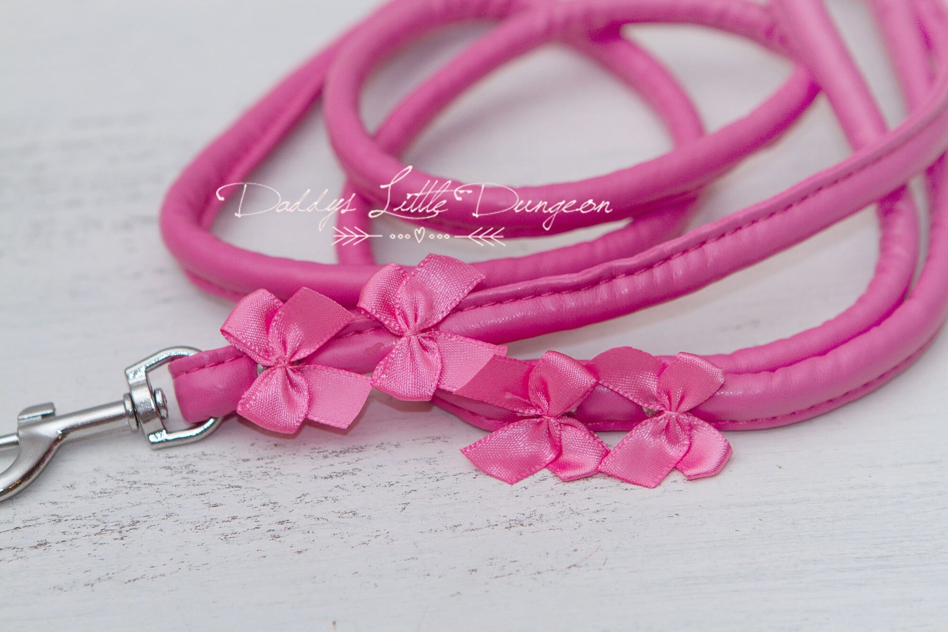 DDLG Pretty Pink BDSM Leash Satin Bows Submissive Master Kitten Kitty Pet Play Petplay Girly Sub Sissy Daddys Little Girl ABDL mature mommy