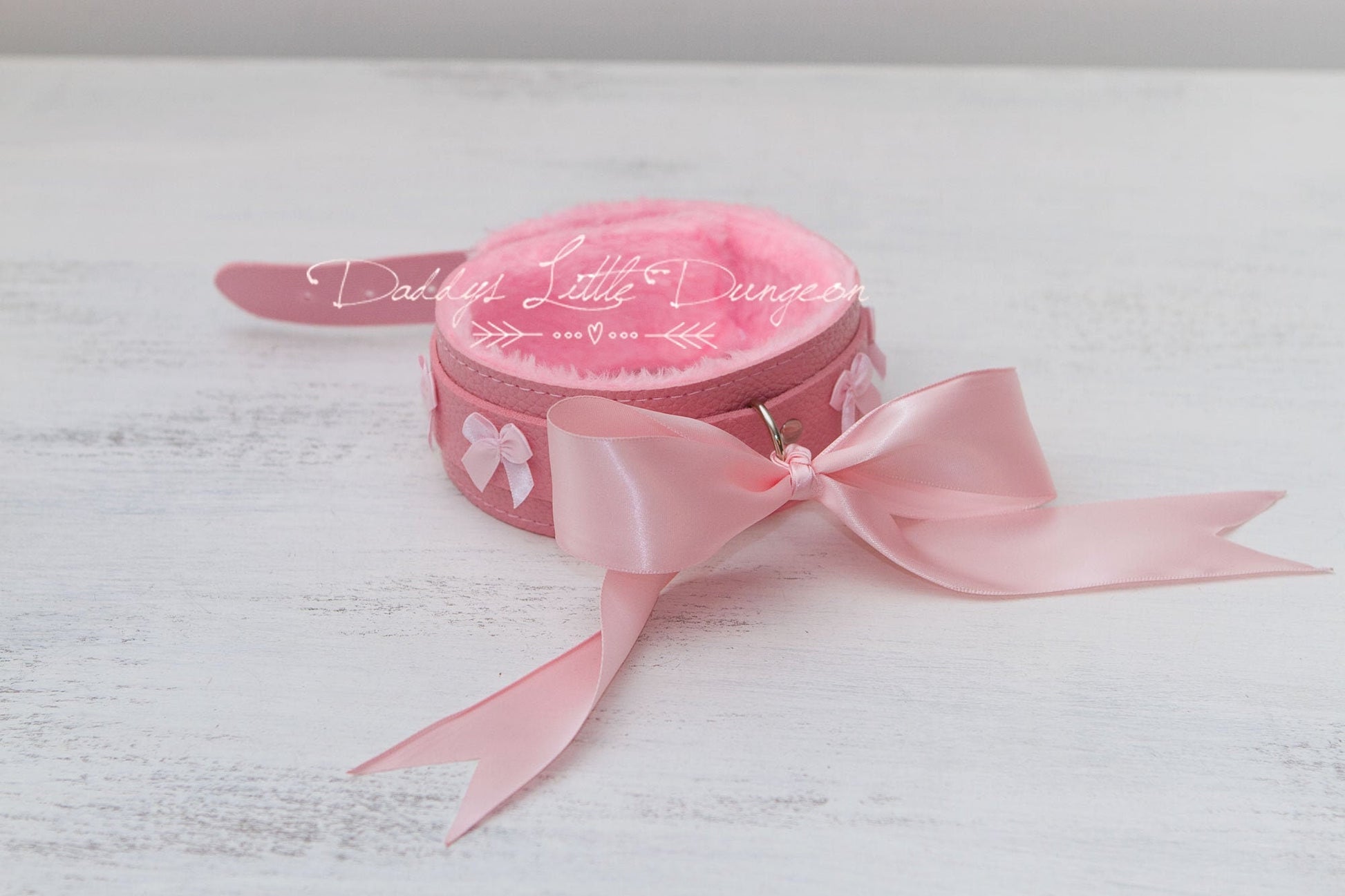 Cute custom designed pretty pink furry collar for light bondage play.