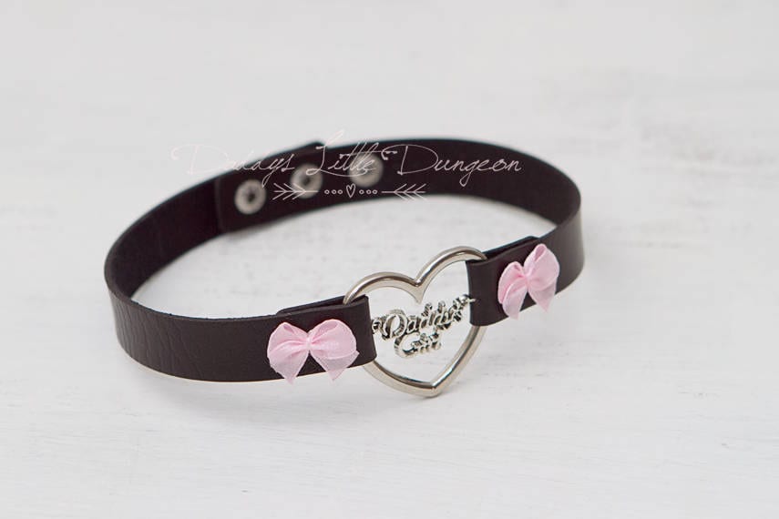 DESIGN YOUR OWN bdsm ddlg Daddy's Girl Charm Heart Day Collar Lolita Choker Pink Satin Bows Pet Play Sub Goth Little Baby Kitten abdl mature