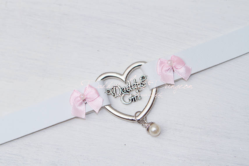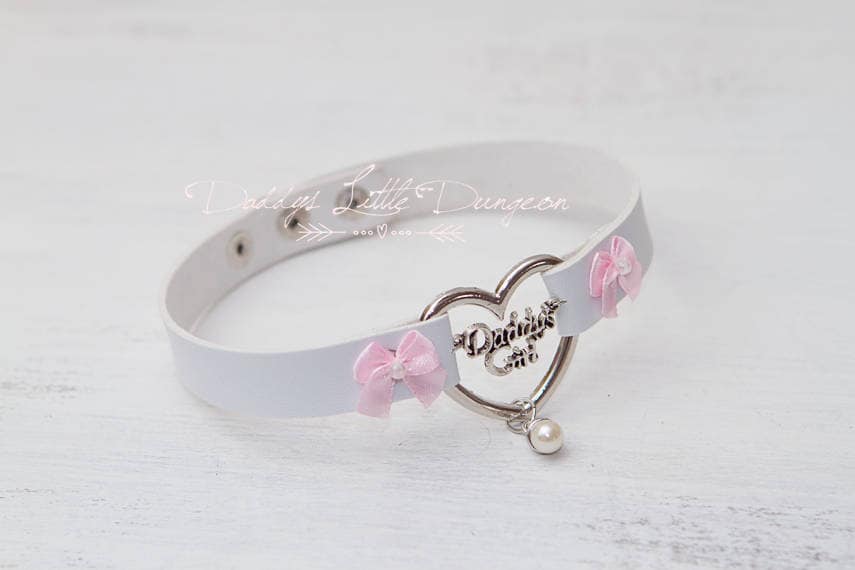 White Daddy's Girl day collar for light BDSM or DDLG play.