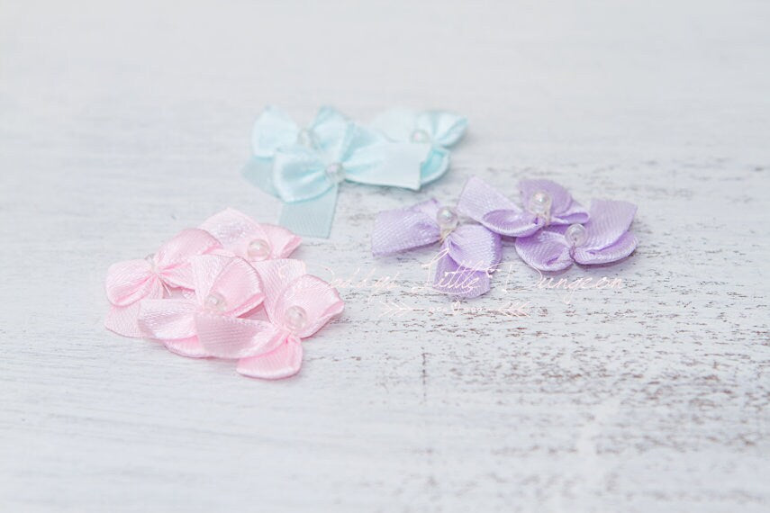 *Luxe design adorned with satin bows in your choice of color on each side of a Daddy's Girl charm in center of heart, and finished with a dangling pearl pendant (matches other treats available in the shop!)