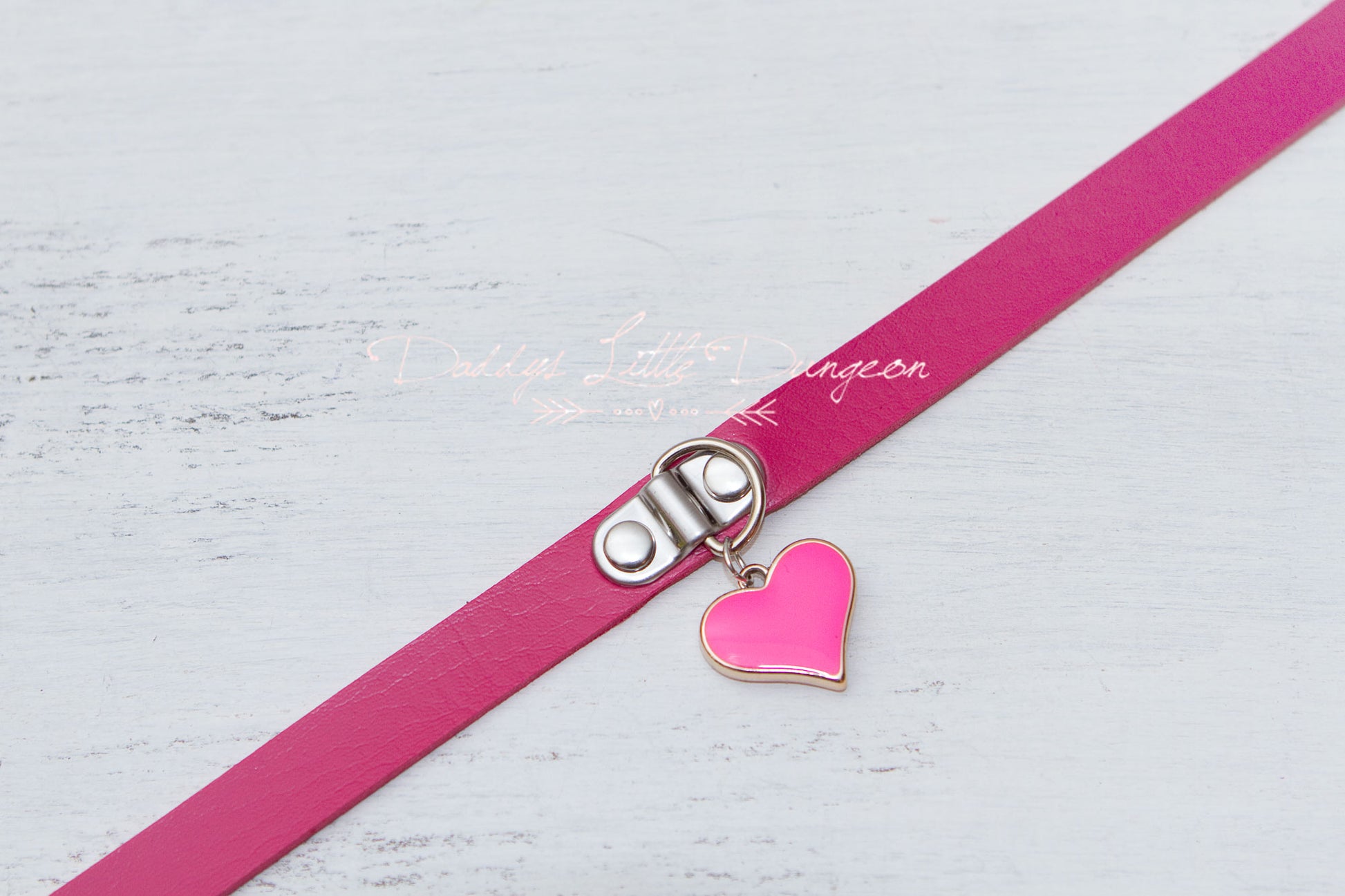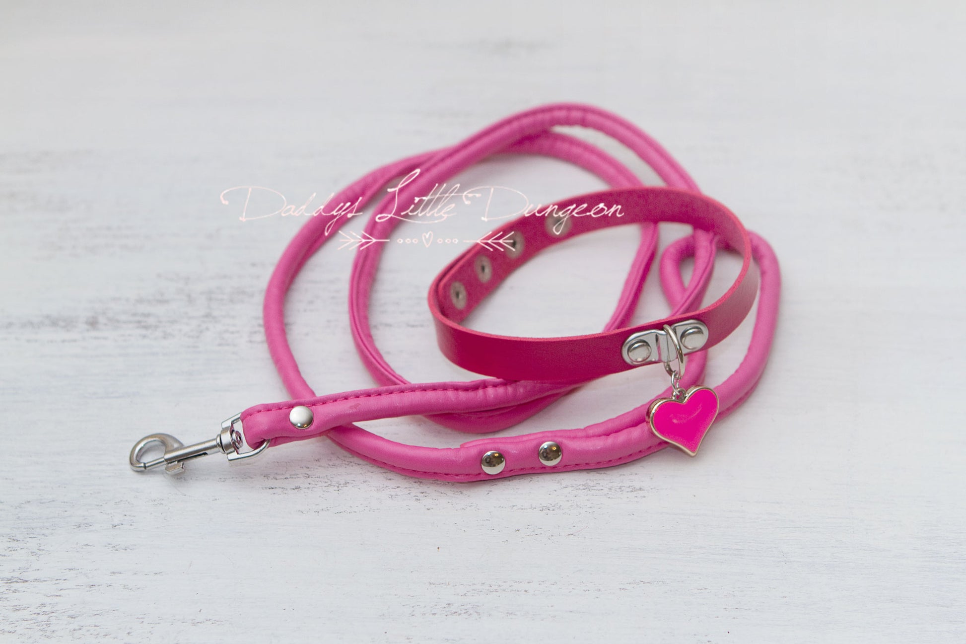 Hot Pink Heart Charm Bondage Collar & Leash Set