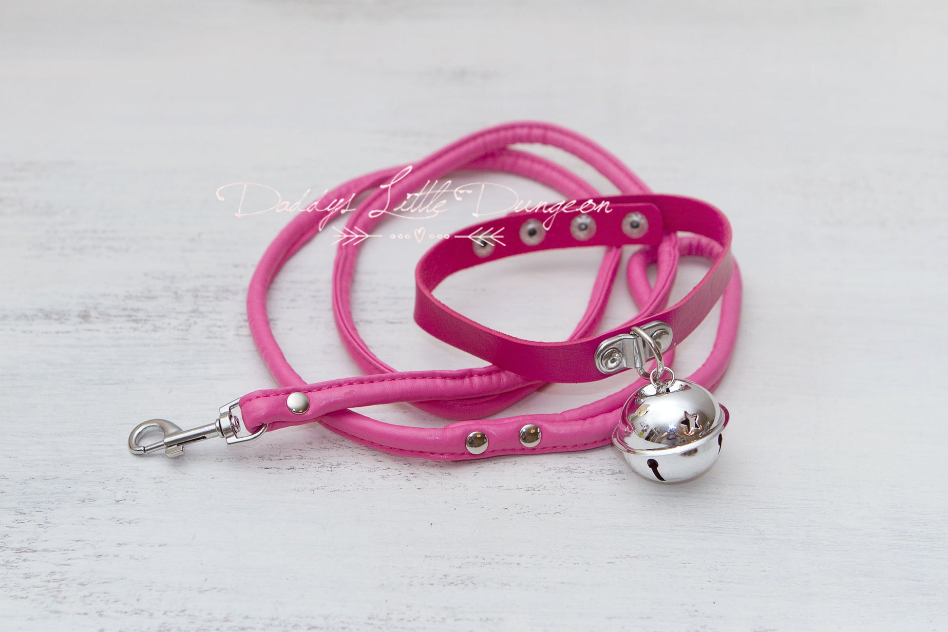 Hot Pink Huge Bell Bondage Collar & Leash Set