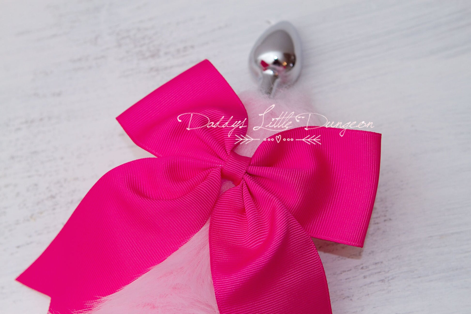 *Extra plush and super fluffy white and pink stainless butt / anal plug tail (actual fur tail is 15 inches long not including plug), adorned with removable hot pink bow for easy cleaning