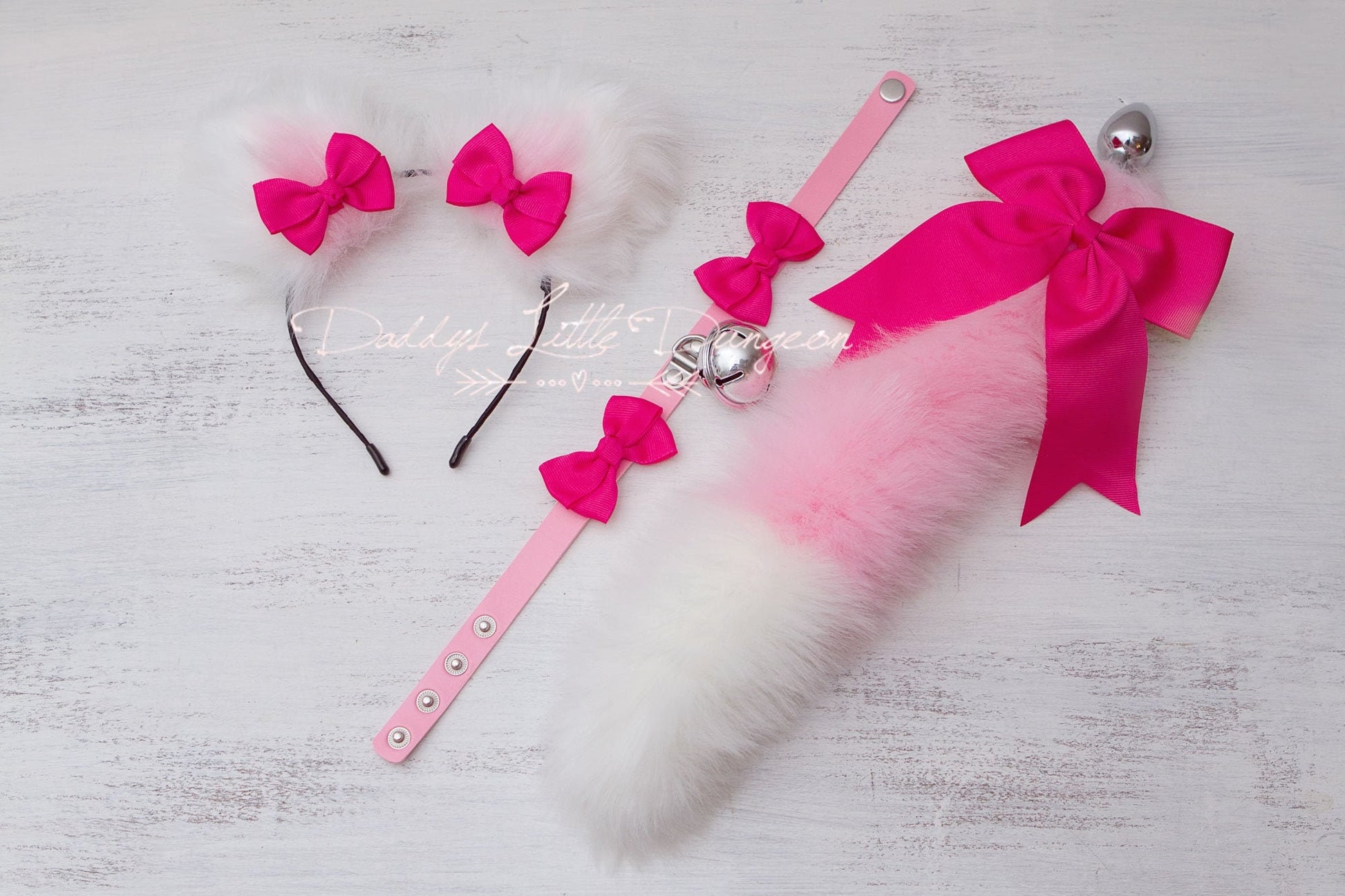 Pet Play Ears Collar Anal Butt Plug Tail Set for BDSM ABDL DDLG kink Kitten Cat Submissive Cosplay Petplay mature 18+ Pretty Fox Kitty Bows