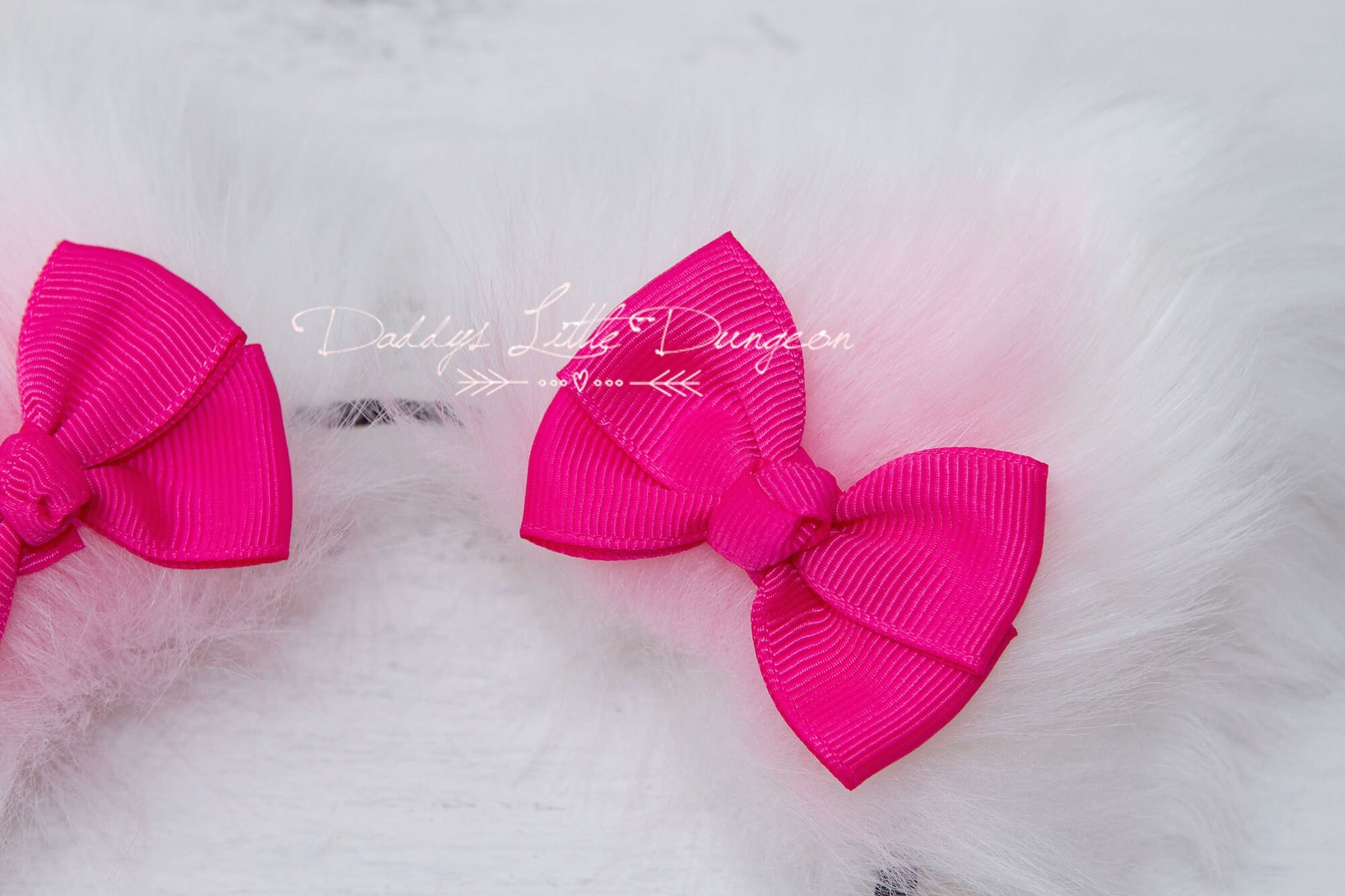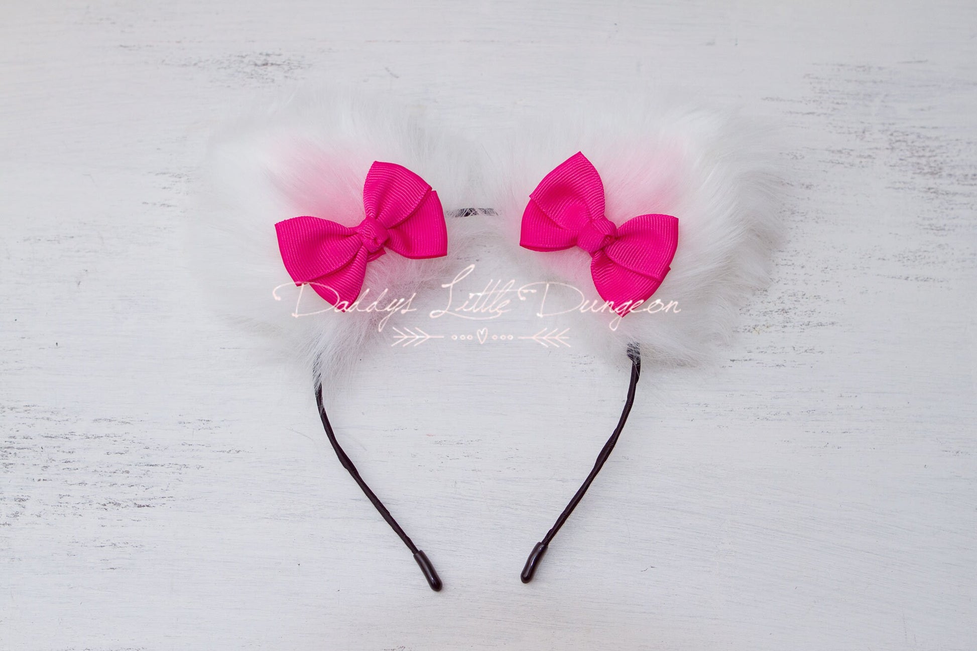*Big, furry white kitten or fox ears headband with pink insides adorned with hot pink bows