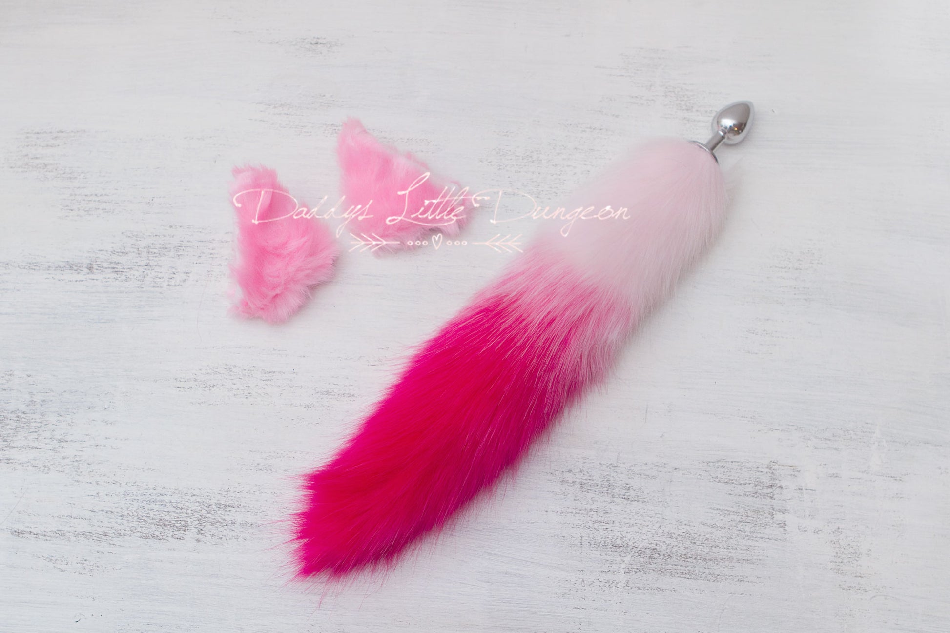 *Extra plush and super fluffy ombre stainless butt / anal plug tail (actual fur tail is 14 inches long not including plug)