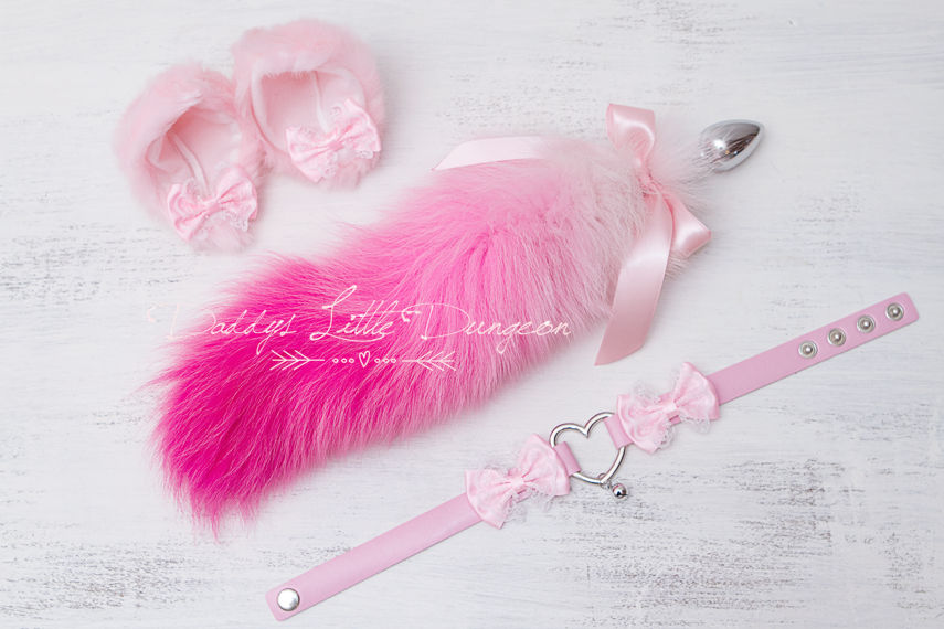 Cute custom designed pretty pink and hot pink ombre Pet Play Starter Set for pet play / cosplay.