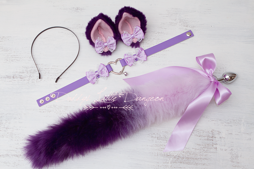 Cute custom designed pretty purple and lilac ombre Pet Play Starter Set for pet play / cosplay.