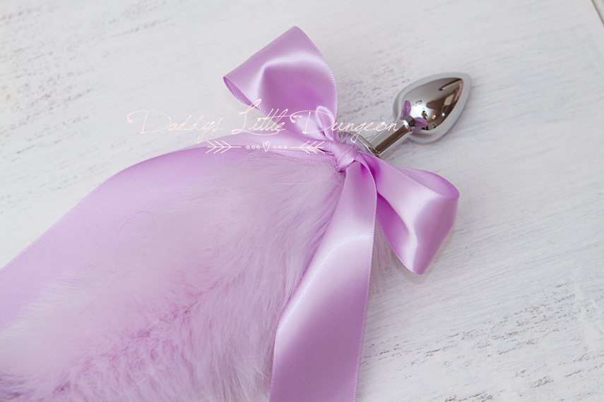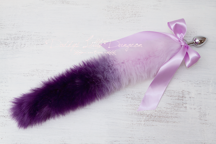 *Extra plush and super fluffy purple ombre stainless butt / anal plug tail (actual fur tail is 14 inches long not including plug), adorned with lilac satin ribbon bow