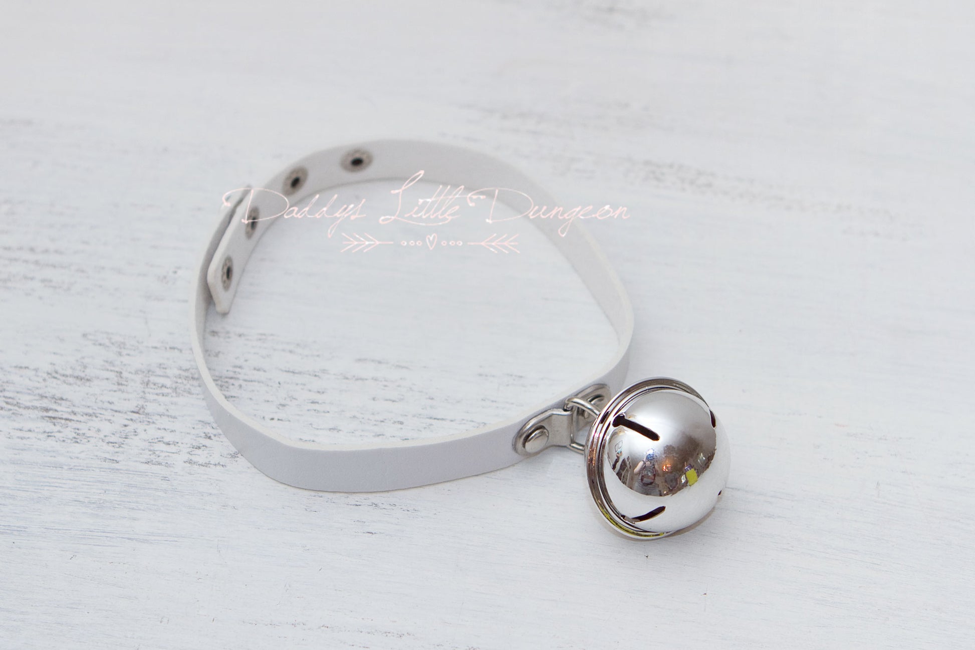 Pretty day collar for light bondage and pet play with huge oversized jingle bell.