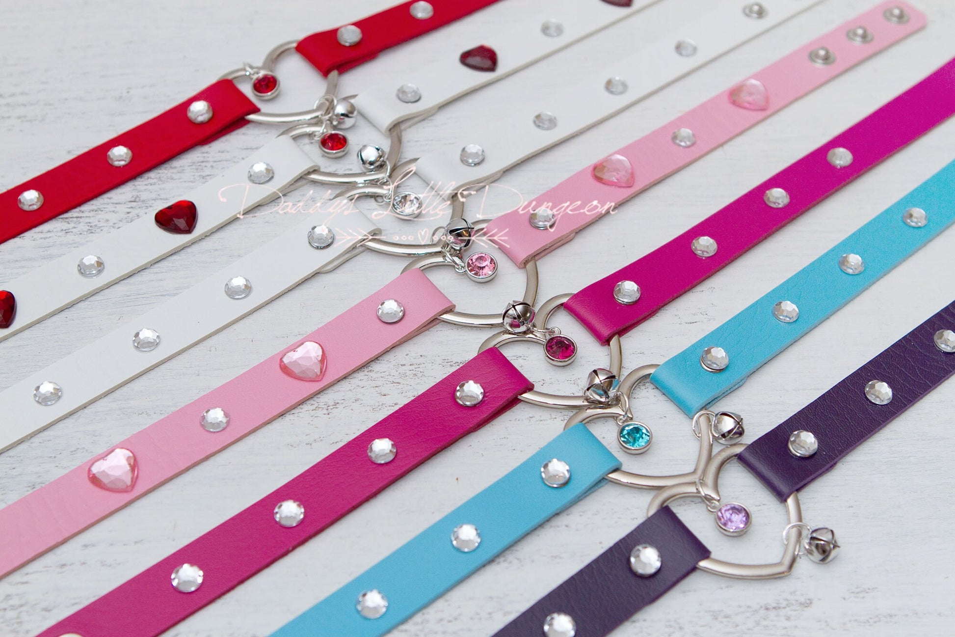 *Heart design in center with sparkling rhinestone crystal charm and shiny kitten bell